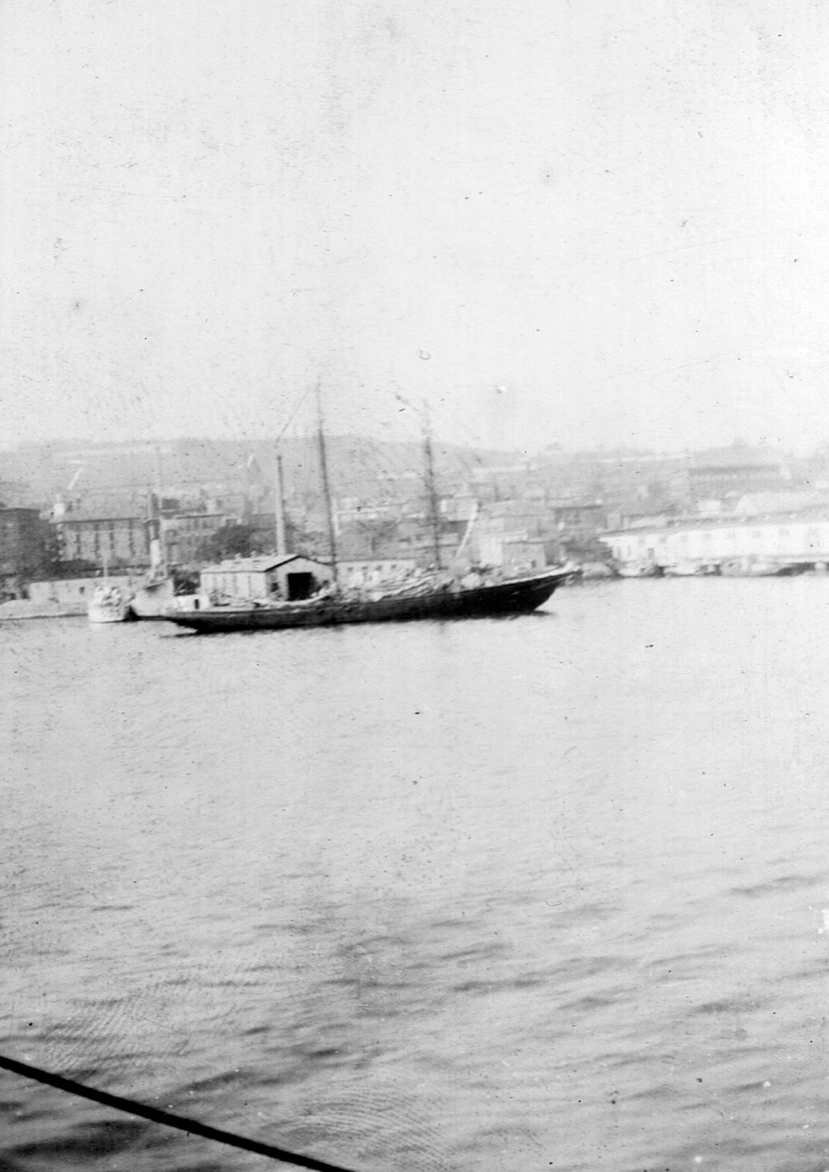 (RSR061) Unknown ships undergoing repairs at the Dartmouth Slips. The photo appears to be taken from a small harbour craft or barge