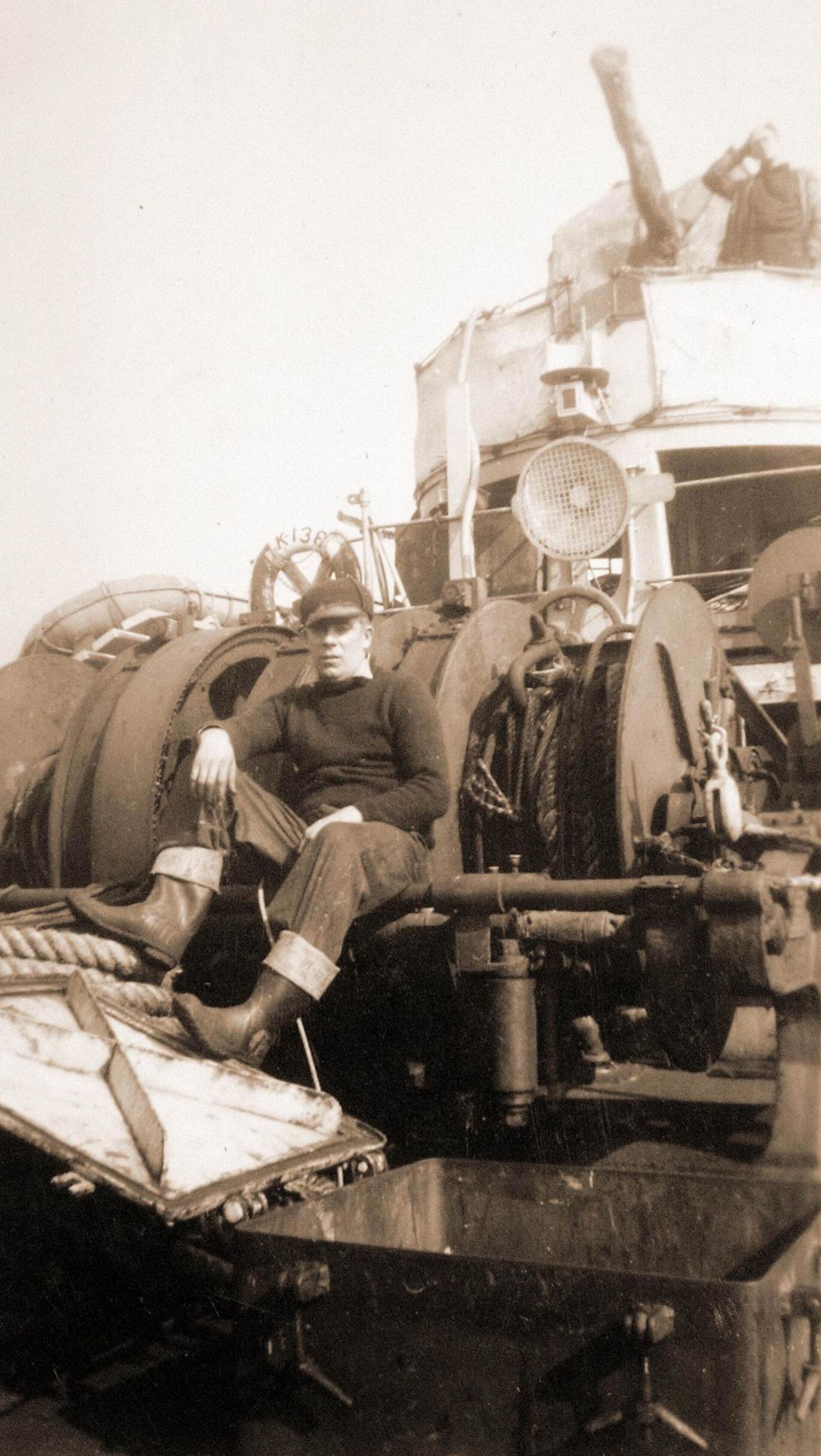 (CJR019) Clarence Reid with shipmate on the boat deck of HMCS CHAMBLY K116 (CJR020) Unknown sailor sitting in from of the minesweeping cables on HMCS CHAMBLY K116 (CJR021) Unknown officers and ratings on the bridge of HMCS CHAMBLY K116 (CRJ022) Unknown officers on HMCS CHAMBLY K116 (CRJ023) Unknown sailor on watch in an unknown space on HMCS CHAMBLY K116 - possibly in the ship's wheelhouse