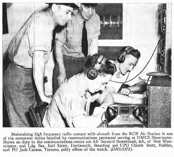 AB Bernie Bowerbank (centre, front) in the communications at the RCN Air Station, HMCS SHEARWATER Crowsnest magazine Nov 1951