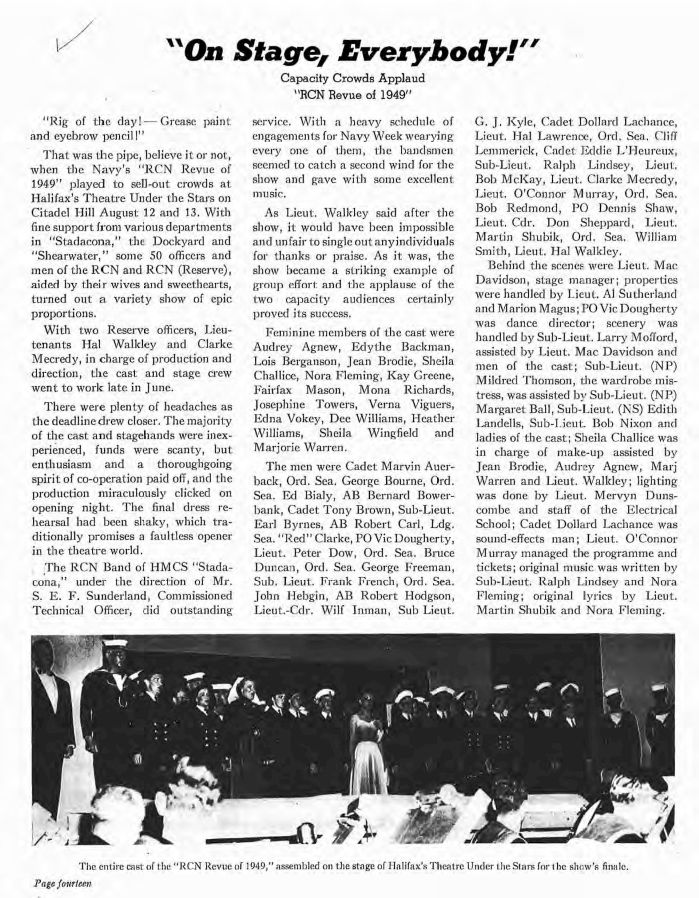While Drafted to Stadacona, AB Bernie Bowerbank was a member of the cast of the "RCN Revue 1949" Crowsnest magazine Nov 1949