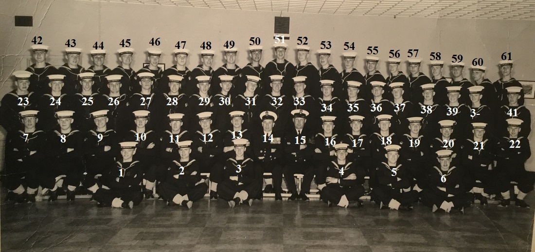(7) Morrison, A. (8) Redinski? (9) Ireland (10) Boucher, G. (11) Lanoy, P. (12) Stevens (13) Dark, CPO (14) Skinner, L., PO1 (15) unknown (16) McFarlin, C. (17) Knutson, N. (18) unknown (19) unknown (20) Forth, J. (21) Hedley?