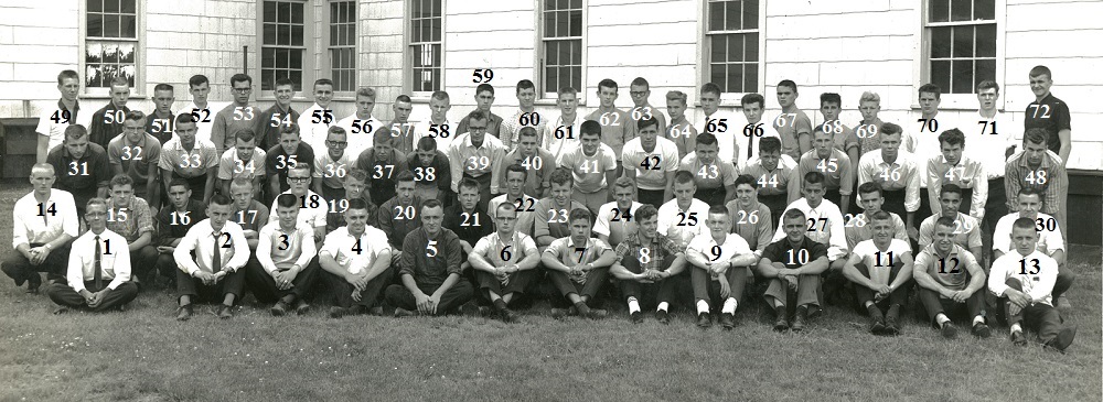 (45) Leaky, Cecil (of Melville, SK) (46) Hunter (47) Hughs (48) Hicks (49) Leduc (50) Unknown (51) Staffen (of Moose Jaw, SK) (52) MacLean (53) Blair (54) Hemstreet (55) Mitchel (56) Jones, C. (57) Stewart (58) Price (59) Thomas, R. (60) Alexander (61) Watt (62) Hill, P. (63) Estabrooks, Wayne (64) Good, R. (65) Pinchin, R. (66) Pacey, T.