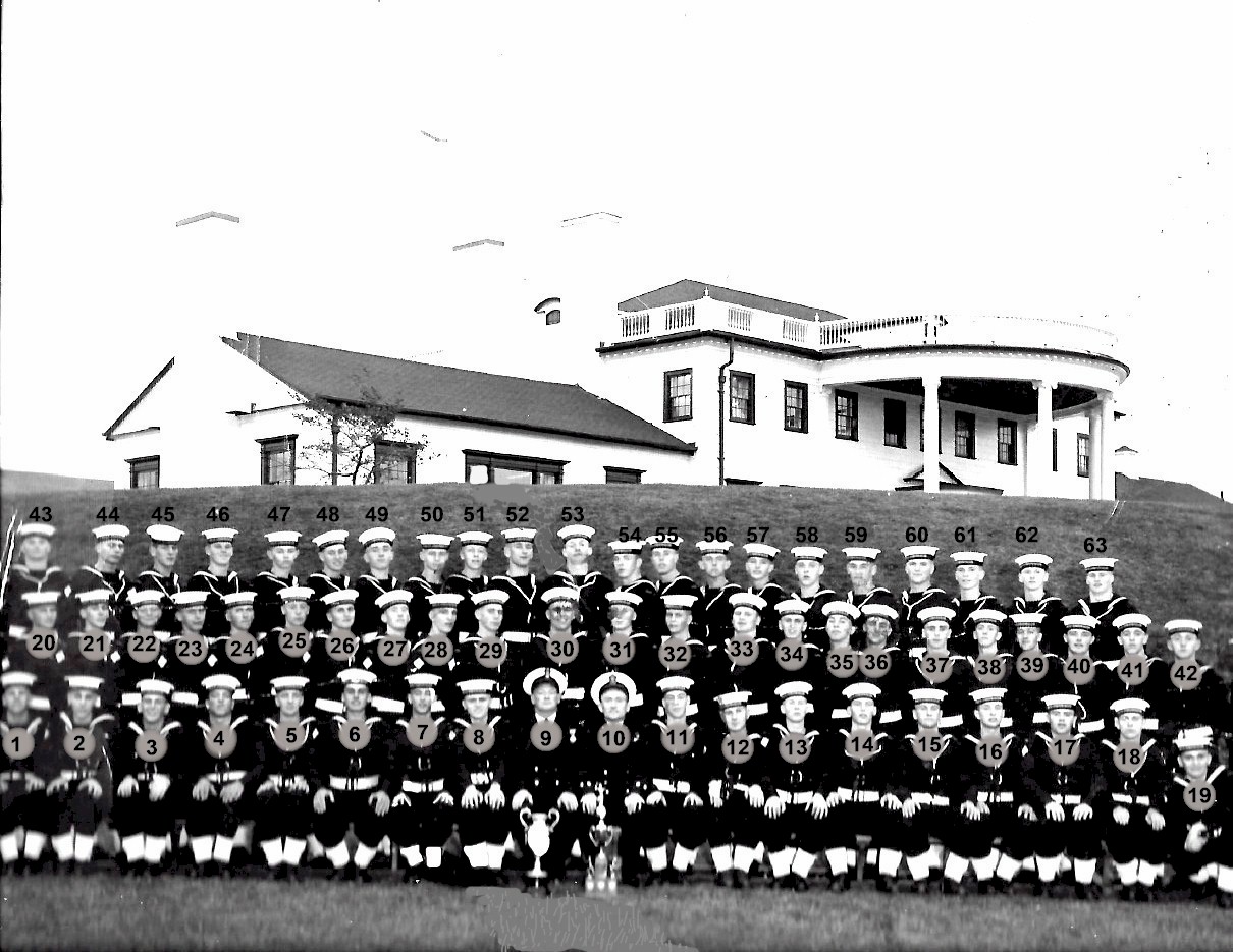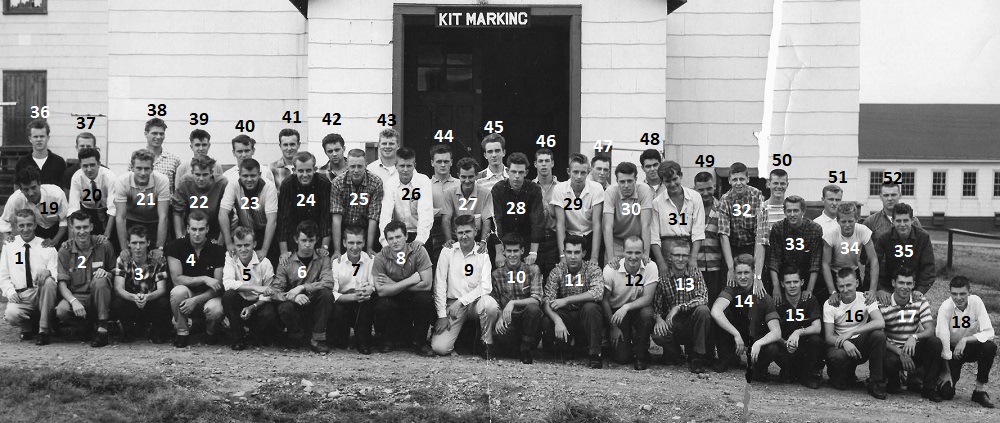 Dick Prescott; Colin Vale; Richard Bornais; Bob Borbon; Dennis Robertson; Ron McCready; Roman Laurier; Bob Brailt; Ray Wach, Tom Wilison; (9) PO Allen (10) CPO Jones; Thomas Waters; Dave Thompson; Brooks; Lenard Anderson; Slade; Ron Garand; Ron Rougeau; Keith Connors; Bill Harrison, Alan Crampton.