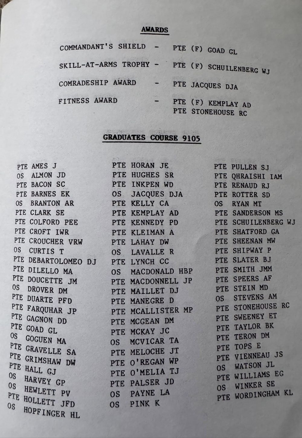 Course 9105 Graduation Ceremony Pamphlet