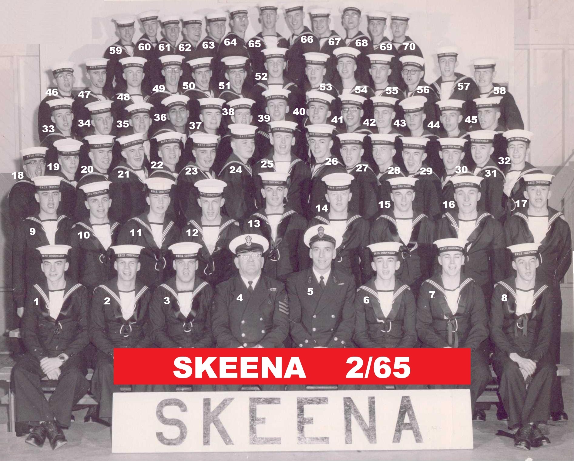 Skeena Division 2/65 Dec 1965 Click on the above photo to view a larger image Click here to view the photo with Staff and Recruits numbered for identification (1) Dicks (2) McMillan (3) Jolin (4) Southall, PO (5) Penny, CPO (6) Maltby (7) Robertson (8) Robitaille (9) Dewey (10) Vanasse (11) Deterding (12) Allan (13) Cavan (14) Ewing (15) Hebert (16) White (17) Weyman (18) Power (19) Brodeur (20) Weibe (21) Bucklage (22) Courcy (23) Proctor (24) Croft (25) Cashman (26) Gagne (27) Beaupré (38) Mumbord (29) Carter (30) Peskett (31) Carter (32) Wand (33) Johnston (34) Piper (35) Cawrthright (36) Singh (36) Pearson (38) Large (39) McCurdy (40) West (41) Cook (42) Gledstone (43) Williamson (44) Ferguson (45) Sadley (46) Baldwin (47) Berthelot (48) Whitman (49) Gore (50) Héroux (51) Gouin (52) Wiegel (53) Hugues (54) Leask (55) Arnold (56) Gravelle (57) Boulter (58) Baker (59) McMillan (60) Wilson (61) Dubois (62) Antle (63) Grave (64) Smith (65) Magee (66) Hudon (67) Hallyman (68) Henrickson (69) Langton (70) Bennett From the collection of Donald Courcy, MS RM, RCN / C.A.F. (Navy) Courtesy of Donald Courcy, MS RM, RCN / C.A.F. (Navy)