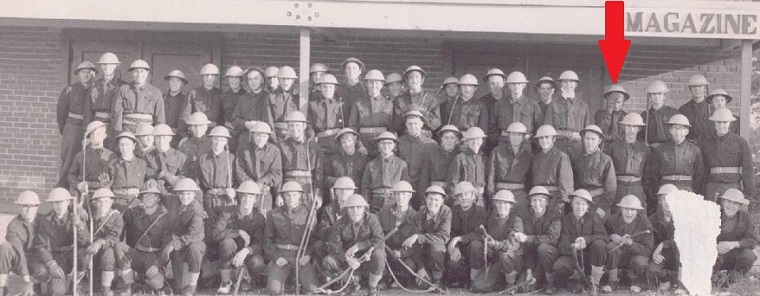 Skeena Division 2/65 preparing for the Assault Course The red arrow is pointing at Donald Courcy From the collection of Donald Courcy, MS RM, RCN / C.A.F. (Navy) Courtesy of Donald Courcy, MS RM, RCN / C.A.F. (Navy)