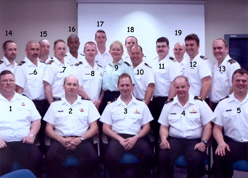 6) Stuart, Tom, LS (7) Campbell, Peter, LS (8) Cooper, Tony MS (9) Porter, Marina, Cpl (10) Lau, Jimmy, LT (11) Gaudet, Brady, LT (12) Maillet, ReJean, LT (13) Richards, Cyril, AB