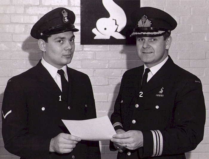 (2) LCdr E. Falstrem (Course Officer) congratulating (1) ABET L.M Smith