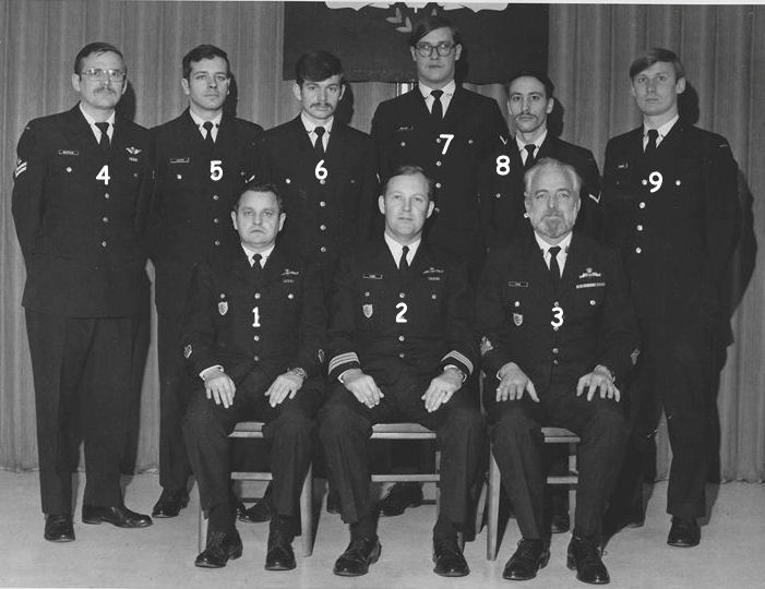 (1) Feener, J., PO1 (Instructor) (2) Cairns, P., Cdr (3) Chase, H., CPO1 (Instructor) (4) Neufeld, K., LS (5) Lauzon, J., LS (6) Cartier, J., AB (7) Brewster, R., AB (8) Beck, L., AB (9) Cummings, H., AB