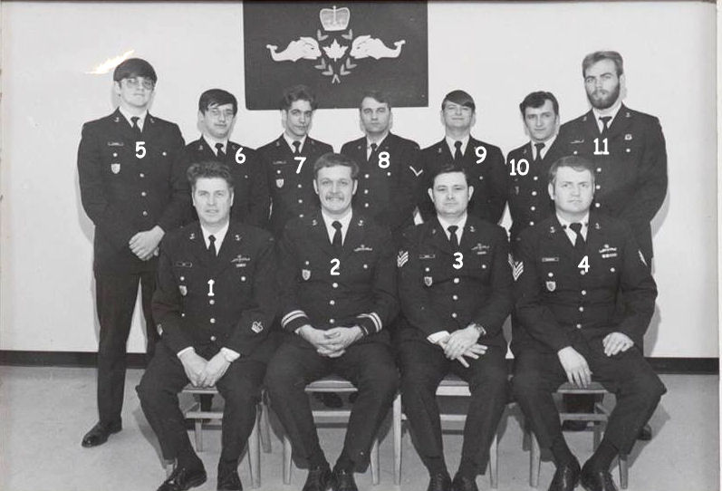 (1) Daly, B., PO1 (Instructor) (2) Bowen, G., Lt (Sub School CO) (3) Ralph, F., PO2 (Instructor) (4) Halvorson, T., PO2 (Instructor) (5) McGibney, P., OS (6) Bachand, R., OS (7) Dufour, C., OS (8) Russell, AB (9) Moulton, M., OS (10) Walsh, P., OS (11) Nikkila, D., OS