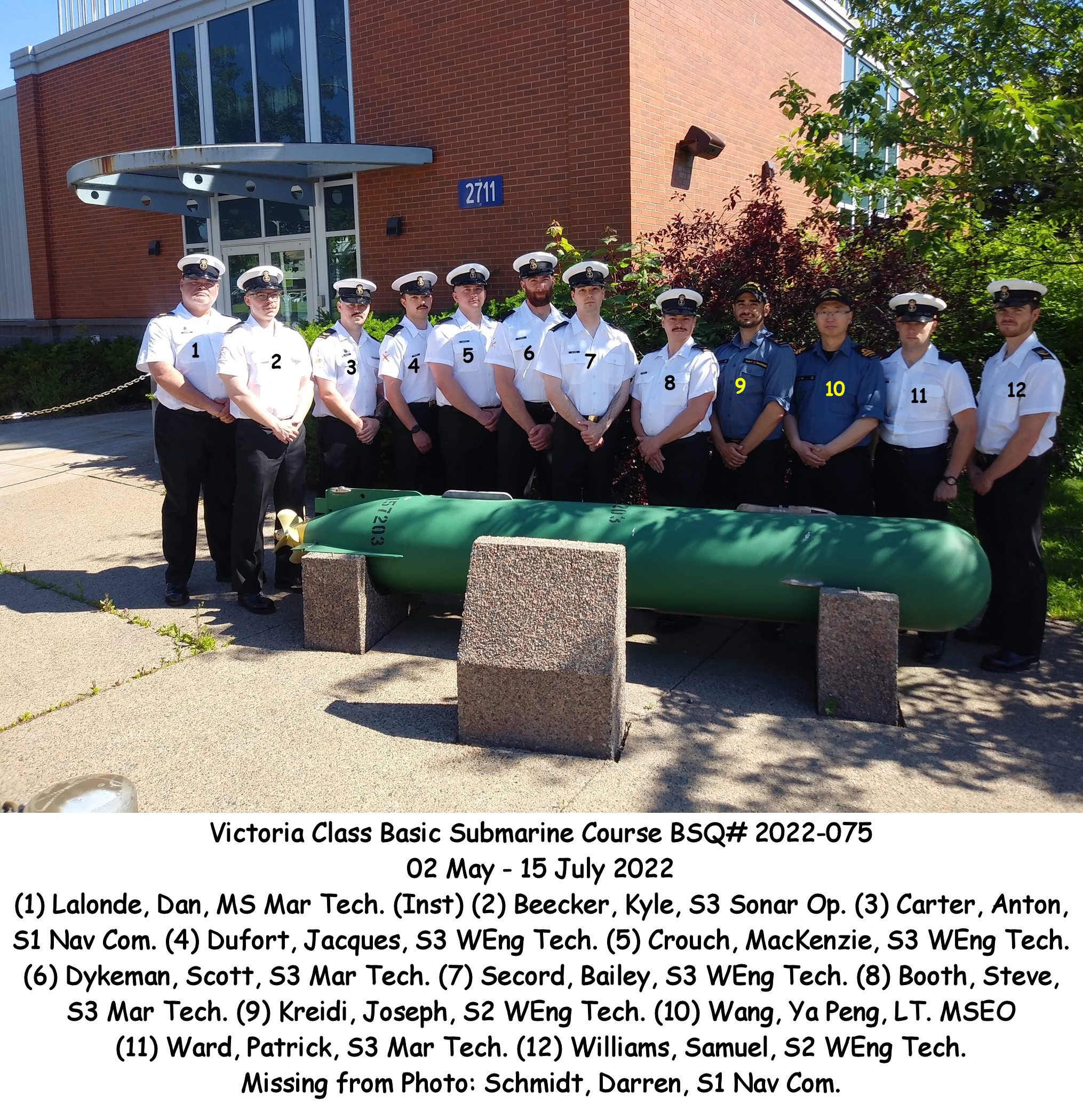 Victoria Class Basic Submarine Course # 2022-075 02 May 2022 - 15 Jul 2022 Click on the above photo to view a larger image without numbers