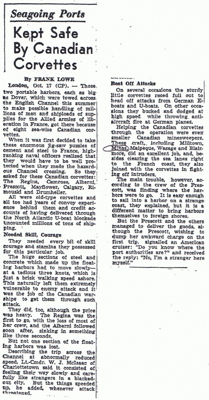(FCCG002) Early Flower Class corvette on the west coast // From the collection of Roy T. Cardy // Courtesy of Dennis Cardy (FCCG003) Colourized photo of an unknown corvette in rough seas // From the collection of Tim Moore, RCNVR // Courtesy of China Moore King (FCCG004) Corvettes secured to trot buoys waiting to be paid-off // From the collection of Robert David Masters // Courtesy of Cathy Masters (FCCG005) Three corvettes alongside St John's, NFLD // From the collection of Lt W. Ralph Moxley, RCNVR // Courtesy of Robert Moxley (FCCG006) Article - Kept Safe by Canadian Corvettes // Globe and Mail 18 Oct 1944 // Courtesy of Mary Kienapple