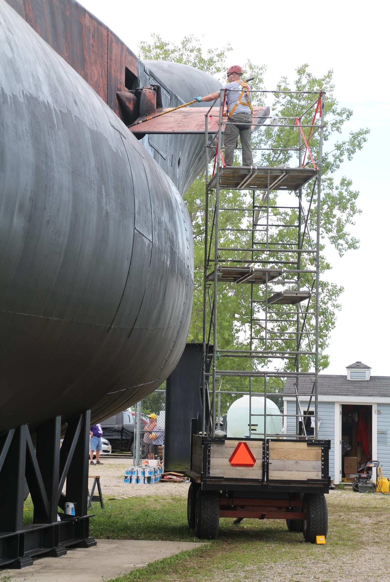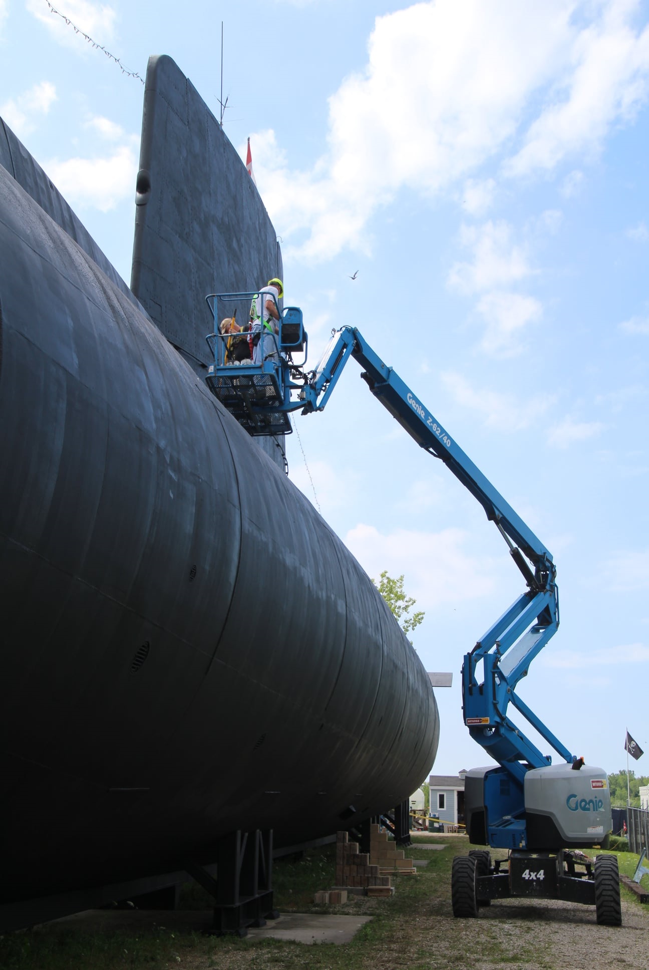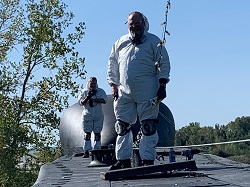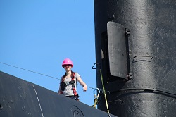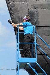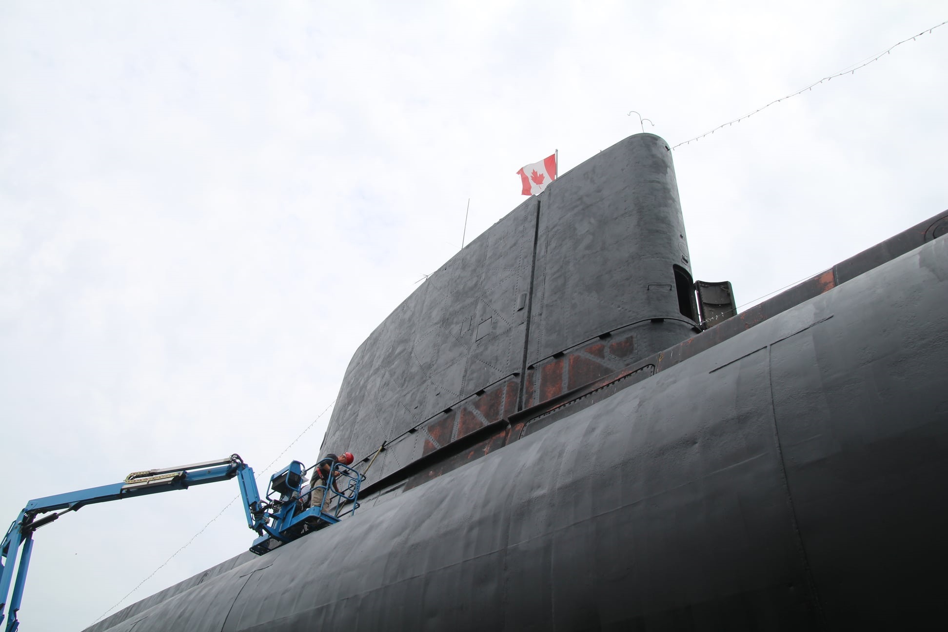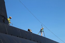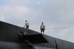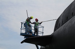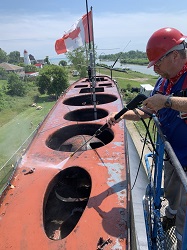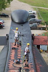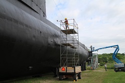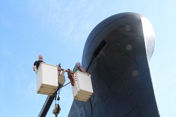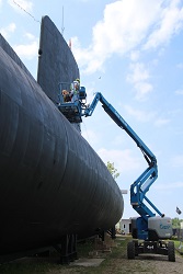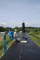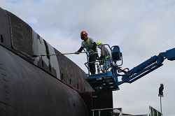 Pressure washing the conning tower