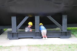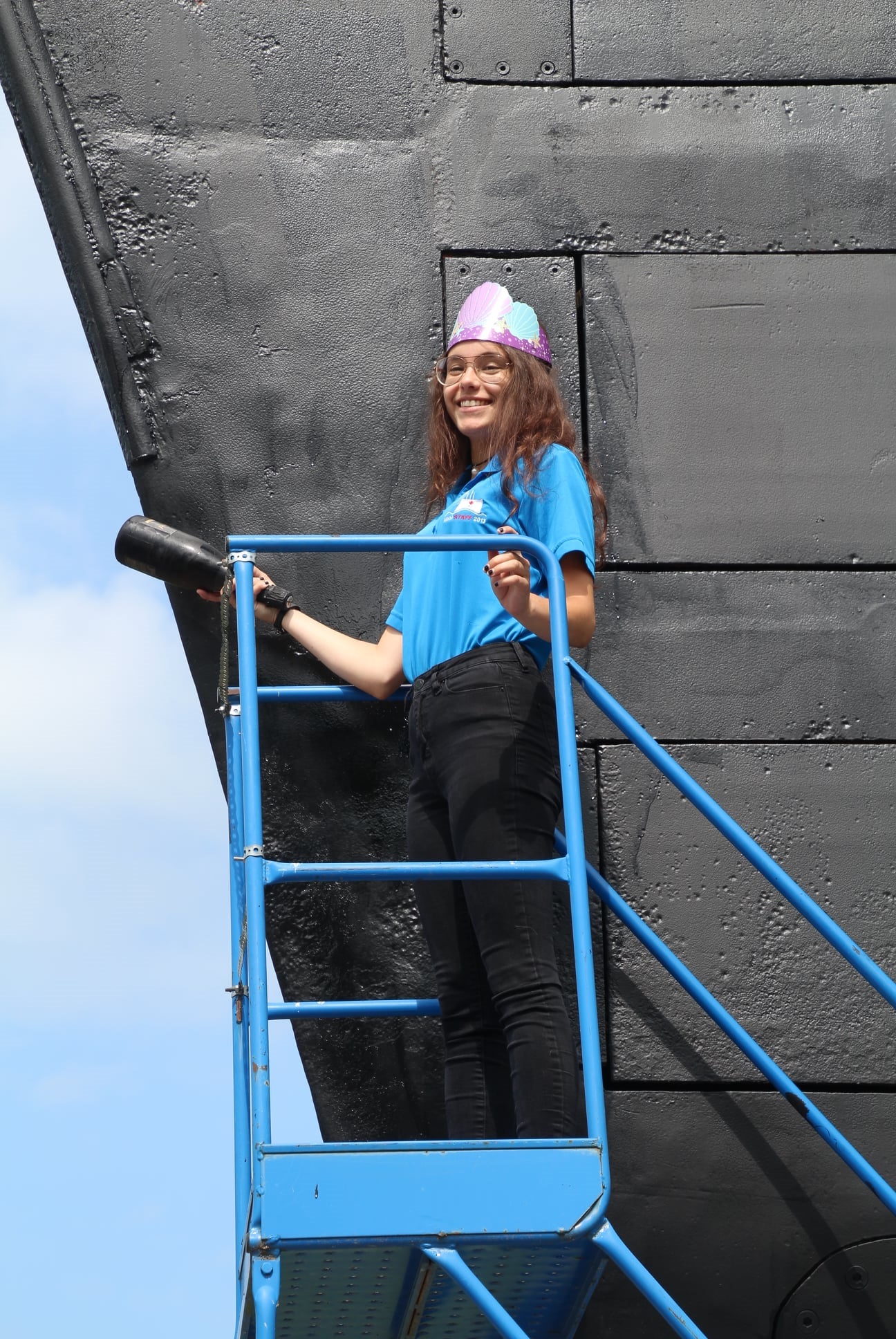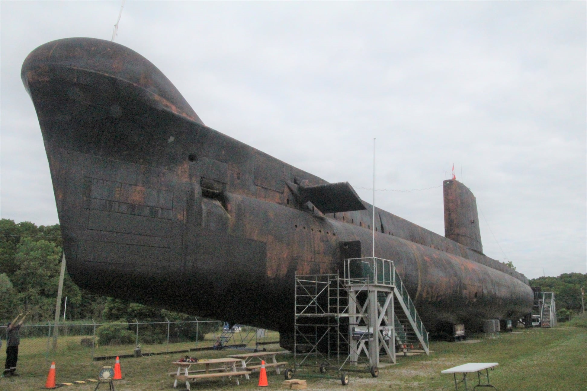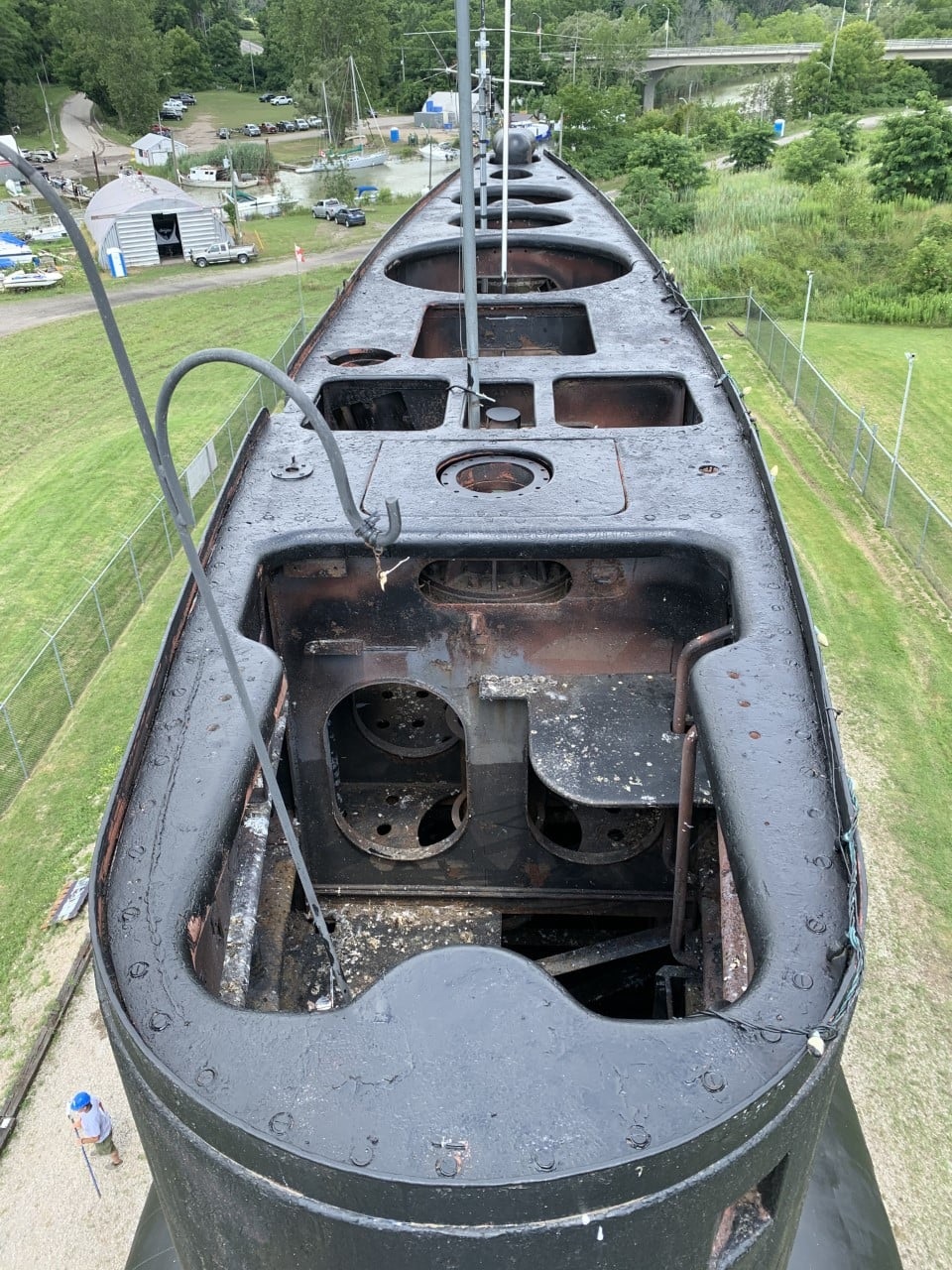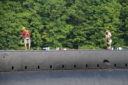 Pressure washing the conning tower