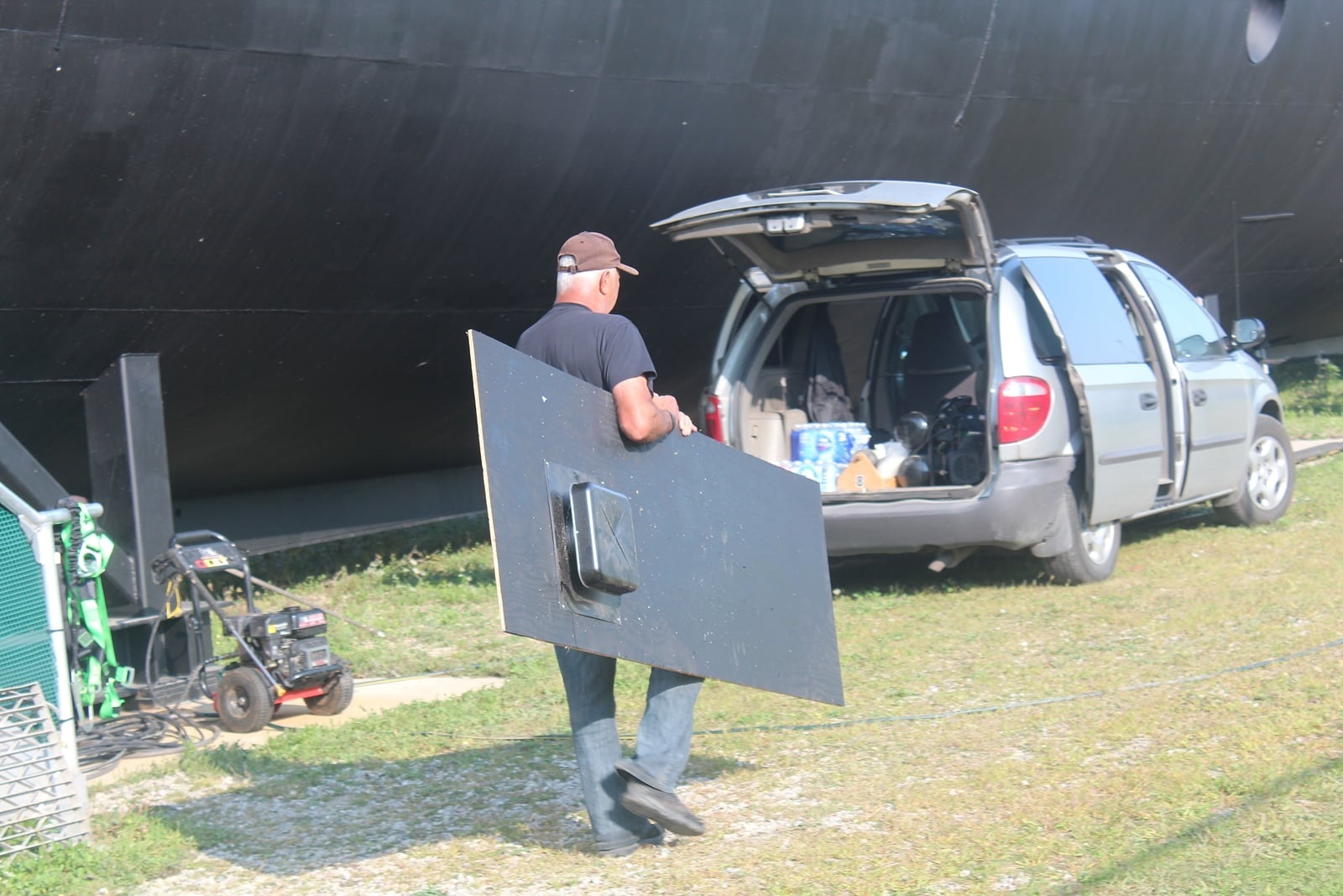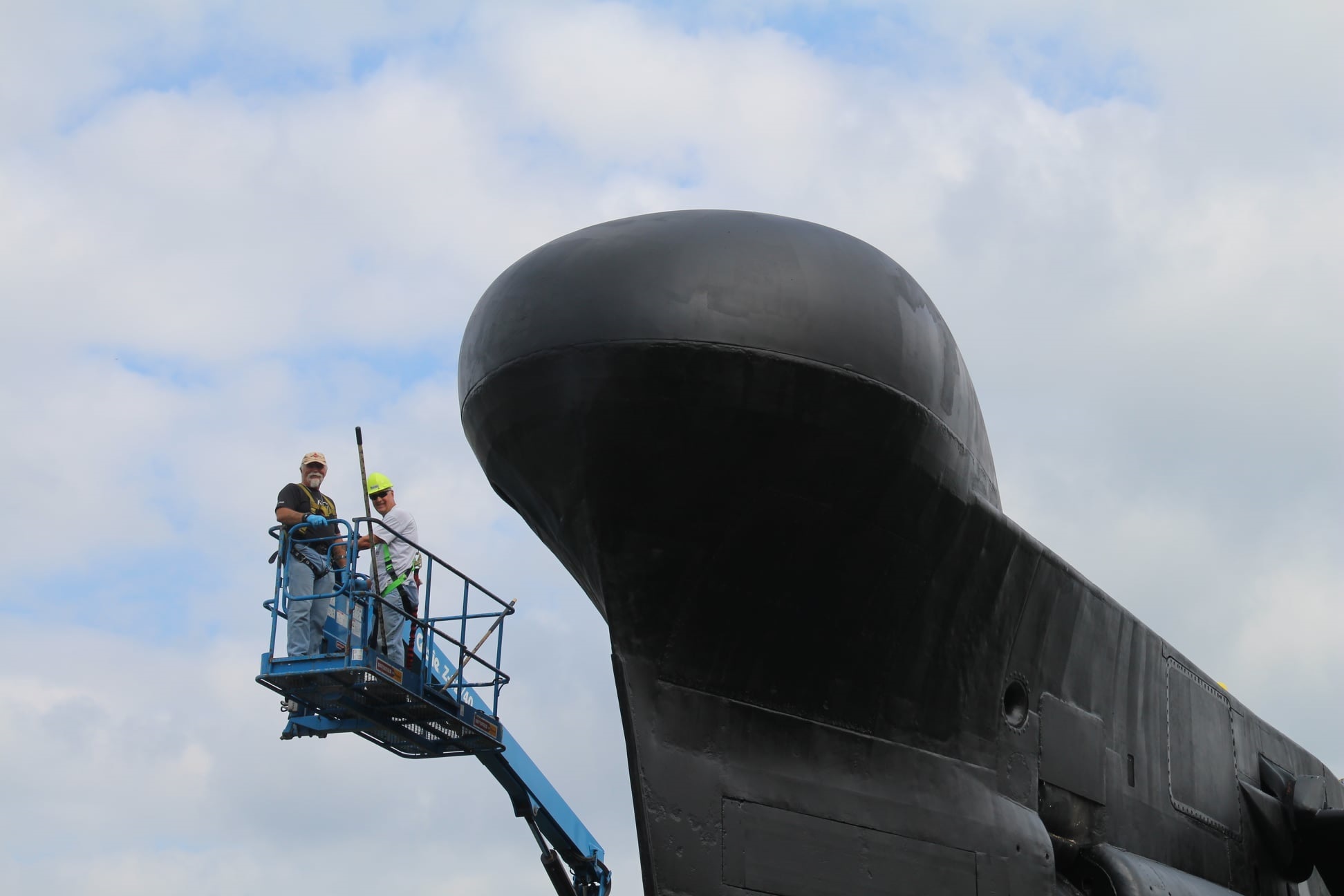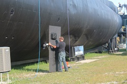 Heppleston and Shawn Preston covering opening below sonar dome