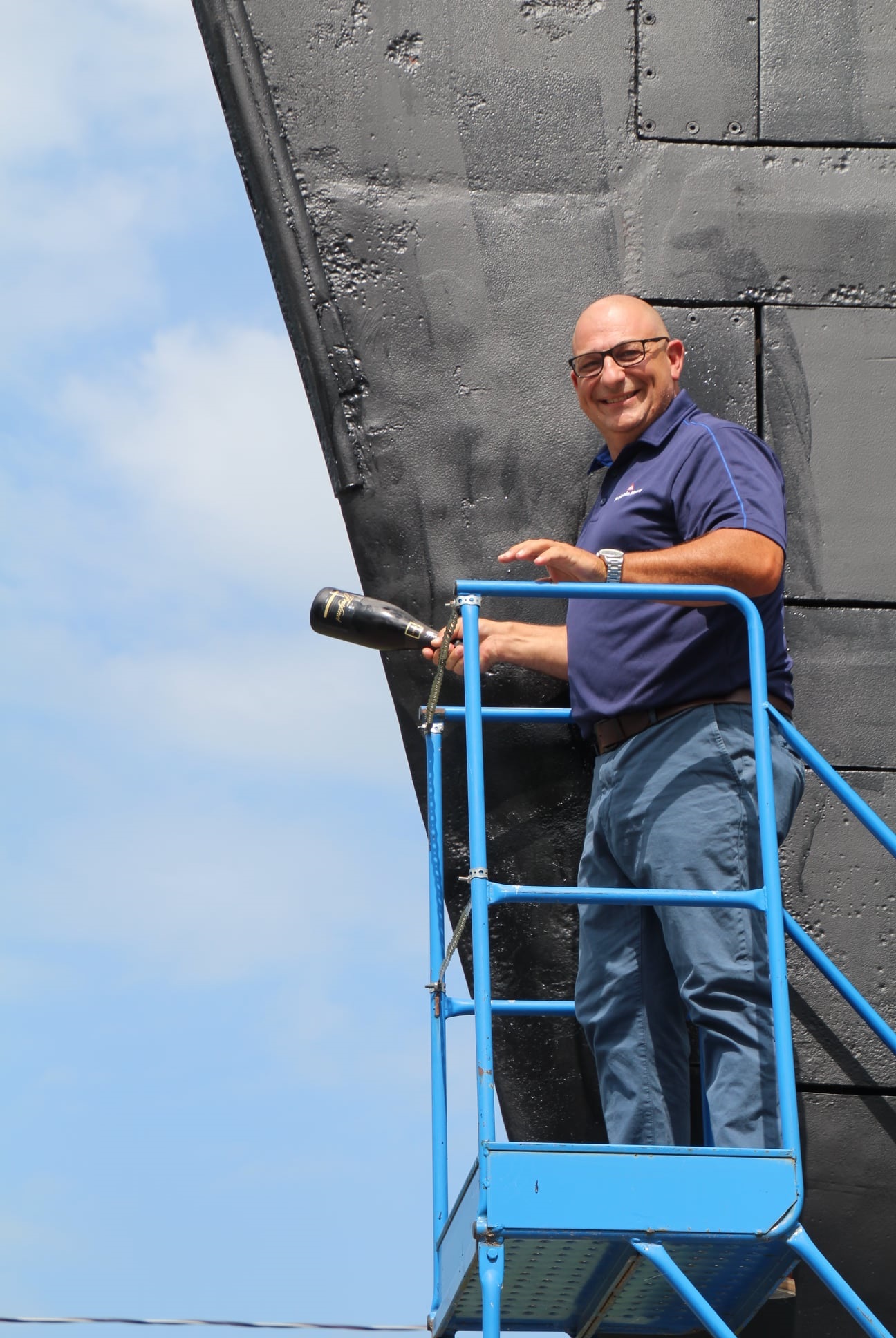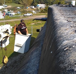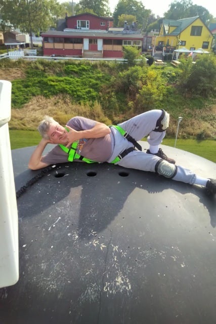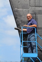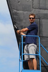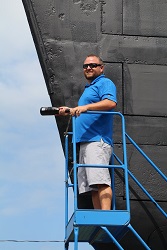 Shawn Preston on the sonar dome