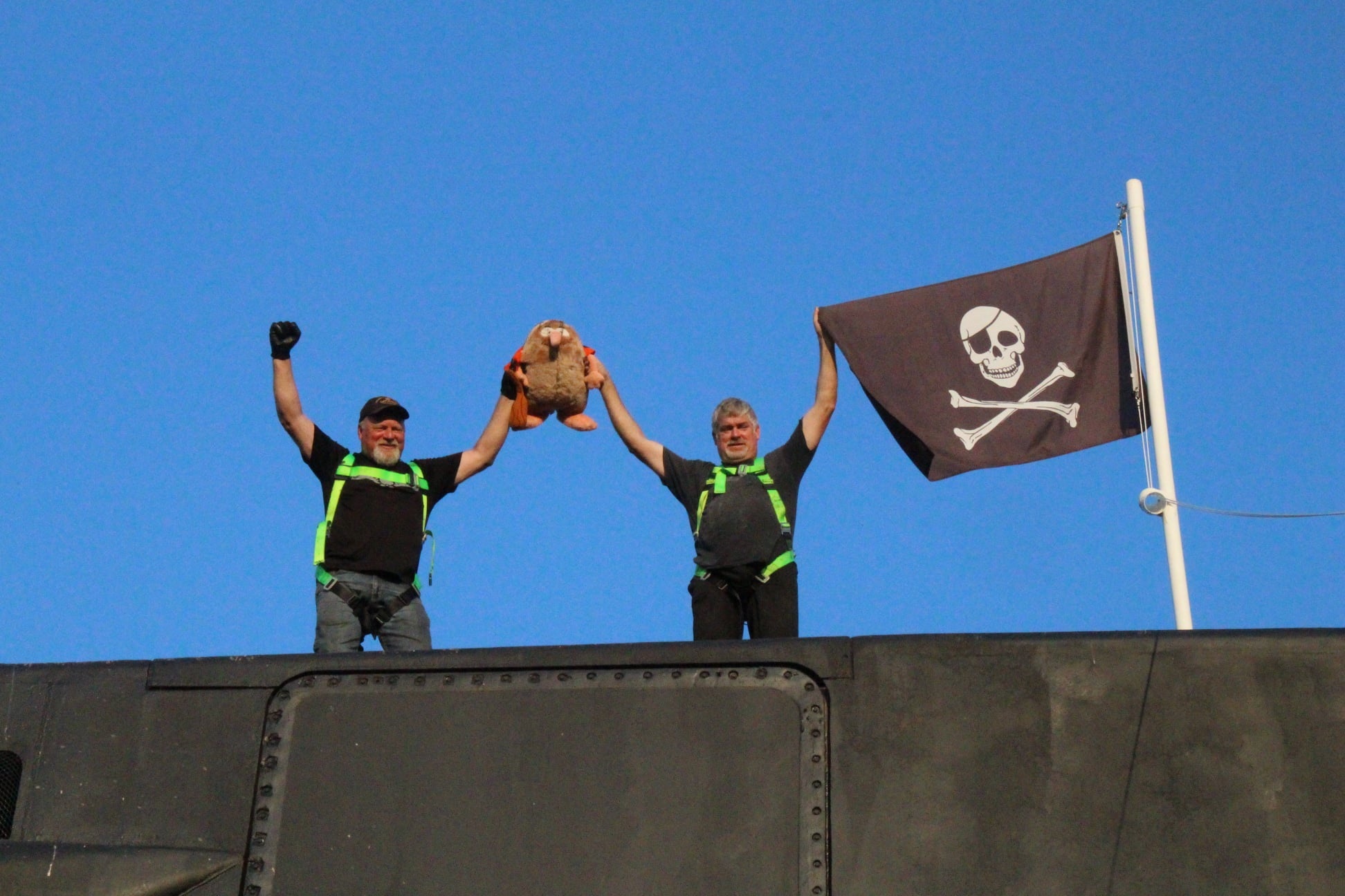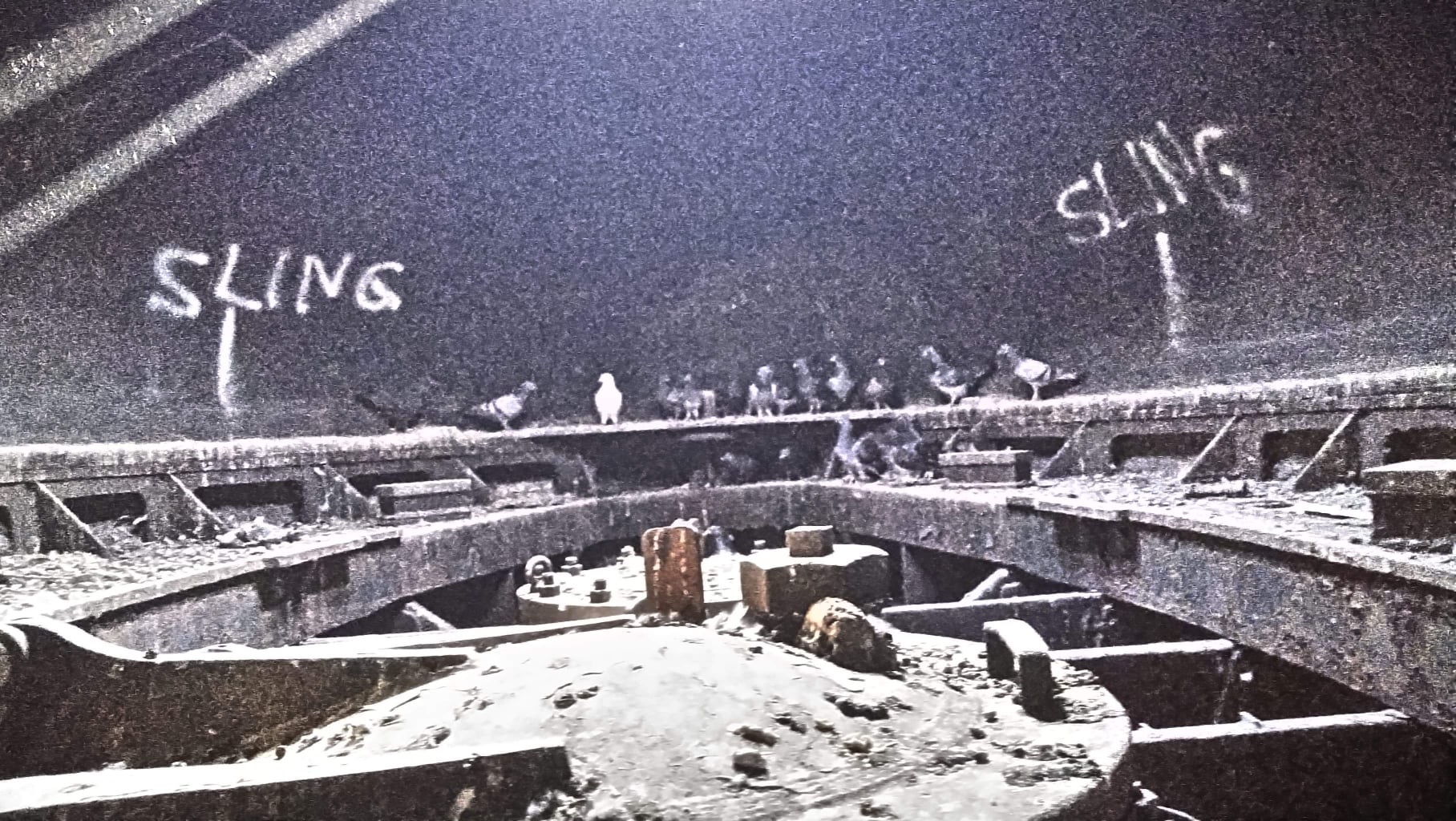 Pigeon party inside the conning tower
