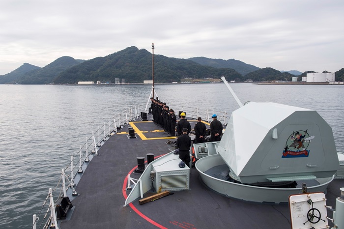 focs'le as the ship departs Sasebo harbour, Japan during Operation PROJECTON