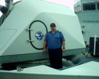 PO2 Mitch Cormier standing beside his gunshield art design (2)