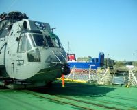 HMCS Montreal's Sea King proudly displays the ships gunshield art on her