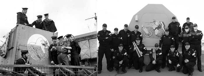 crew of HMCS REGINA 334 is proud to unveil the new gunshield art, a homage