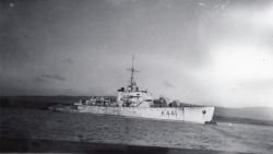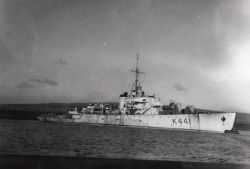 HMCS LOCK ALVIE K428, one of our frigates of Escort Group 9 (E.G. 9)