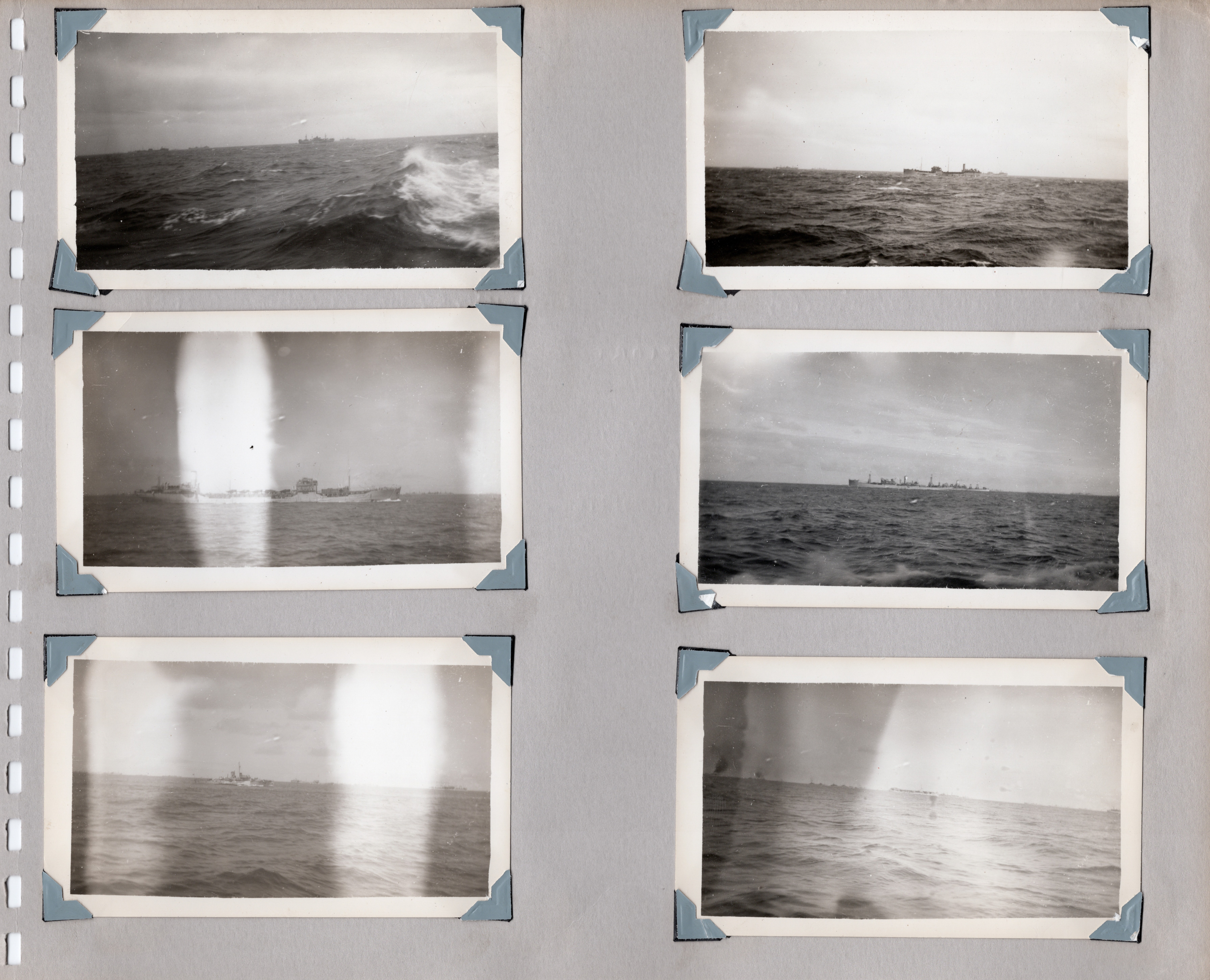 2 photos: Ships in convoy North Atlantic, C-2 Escort