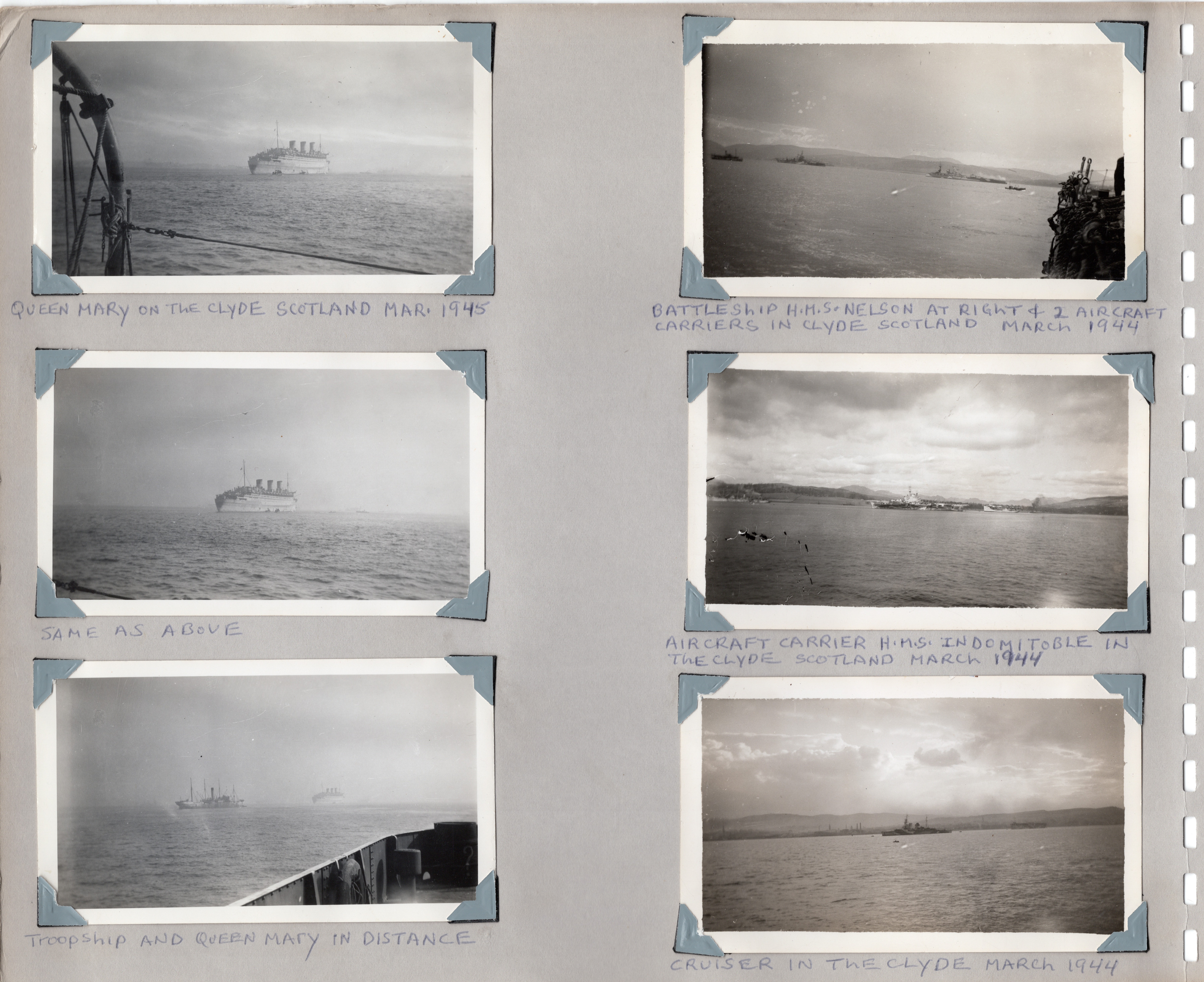 Battleship HMS NELSON at right and 2 Aircraft carriers in the Clyde,