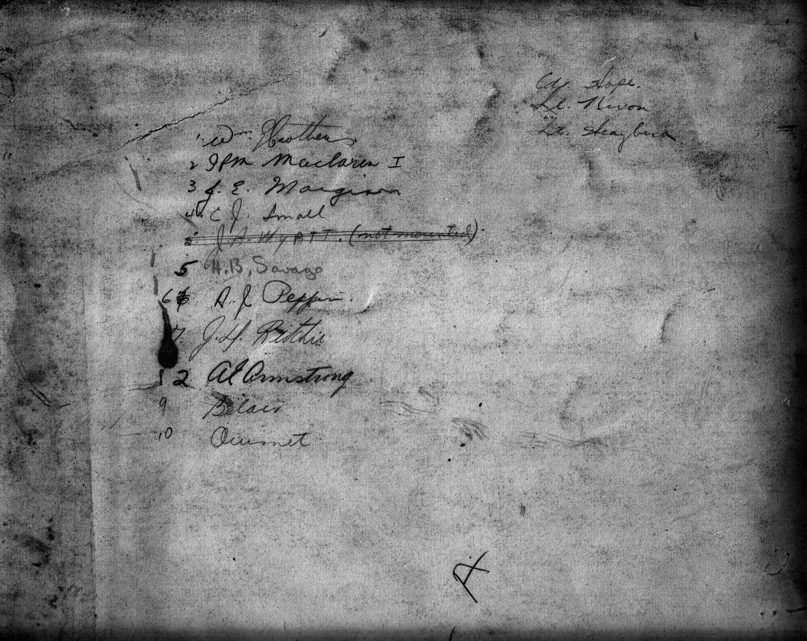 There were 3 copies of this photo in Lt Keith Huffman's collection.  These are the names written on the back of each copy.