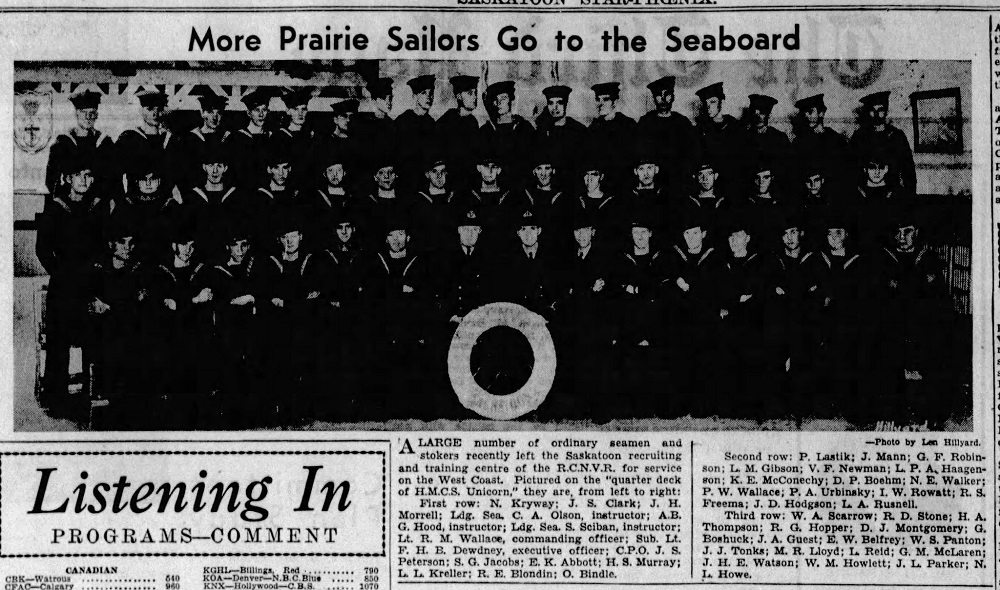 Saskatoon Division RCNVR More Prairie Sailors Go To Seaboard The Saskatoon Star-Phoenix Click on the above photo to view a larger image