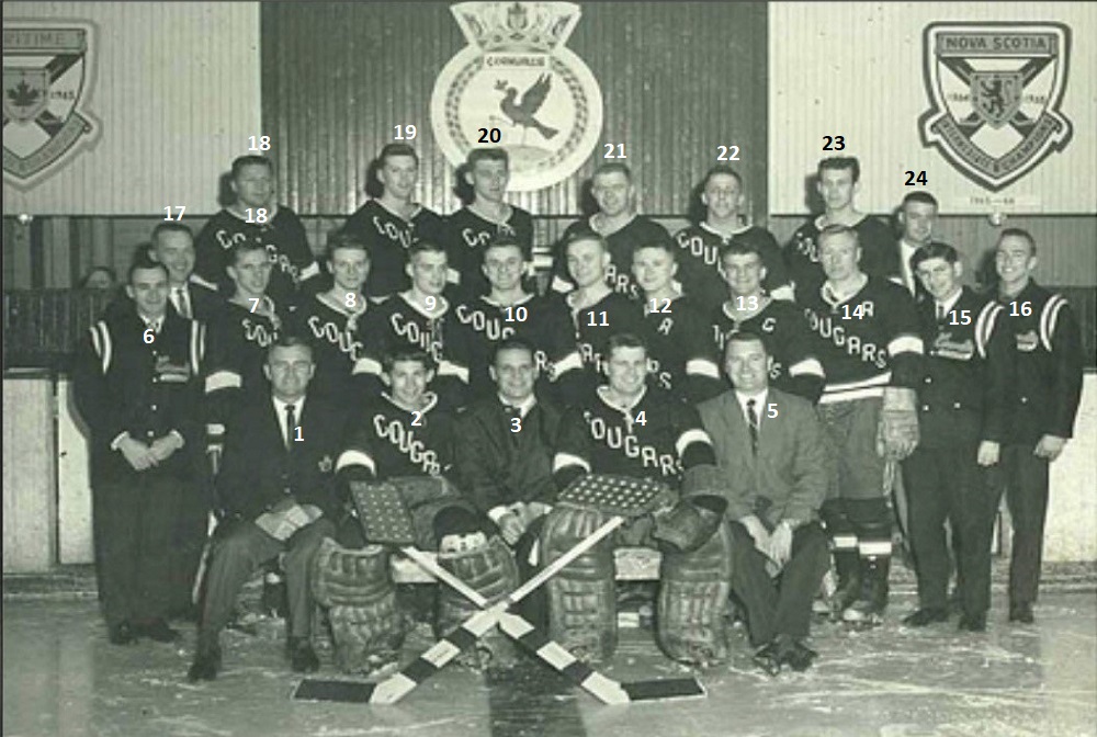 (6) Jim Phillips (7) Len Boucher (8) Skip Soleman (9) Greg Wells (10) Unknown (11) Rick Pratt (12) Bruce Campbell (13) Rollie Lee (14) Unknown (15) Ken Chisolm (16) Glen Alexander (Assistant Equipment Manager)
