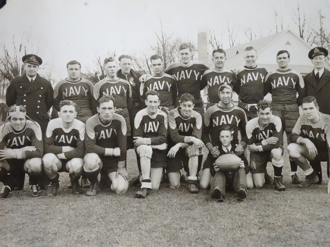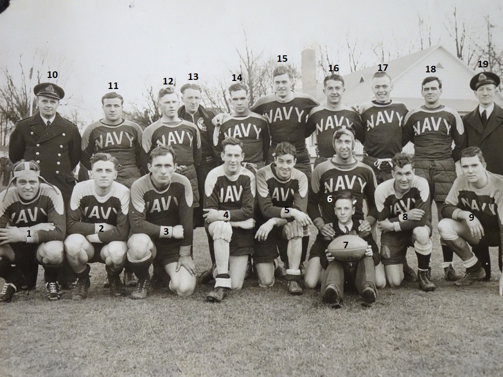 (10) Lancaster, Gerry, Lt, Coach (11) Momberquette (12) Graven (13) Burchell (14) Cole (15) McPhee (16) Roberts (17) Robertson (18) Arnott (19) McDonald, Charlie, W.O., Sports Officer