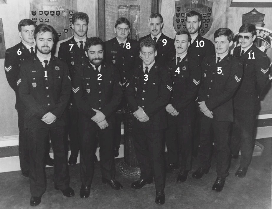 (1) Unknown (2) Keats, Nathan (3) Lafleur, Denis (4) Valle, Richard (5) Peach, Terry (6) Hill, Doug (7) Unknown (8) Unknown (9) Marotte, Chris (10) Unknown (11) Ruler, Ken