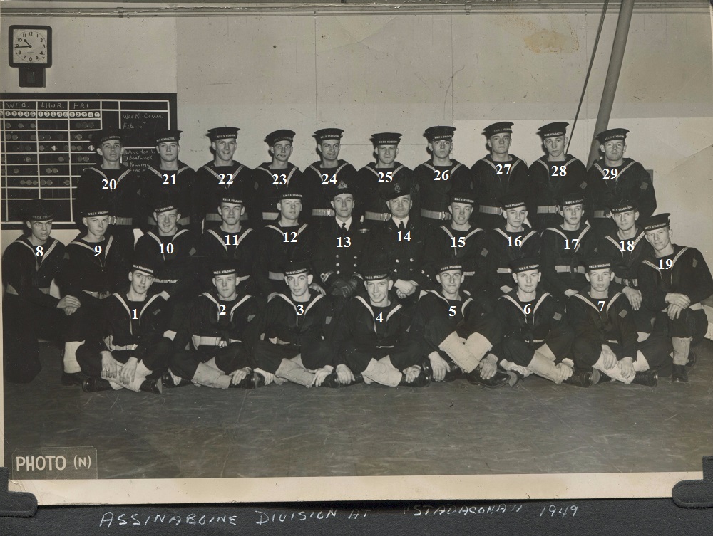 A Royal Canadian Navy Historical Project STADACONA HMCS / RCN BARRACKS / CFB HALIFAX Course photos Assiniboine Division HMCS STADACONA, Halifax - Feb 1949 Click on the above photo to view a larger image