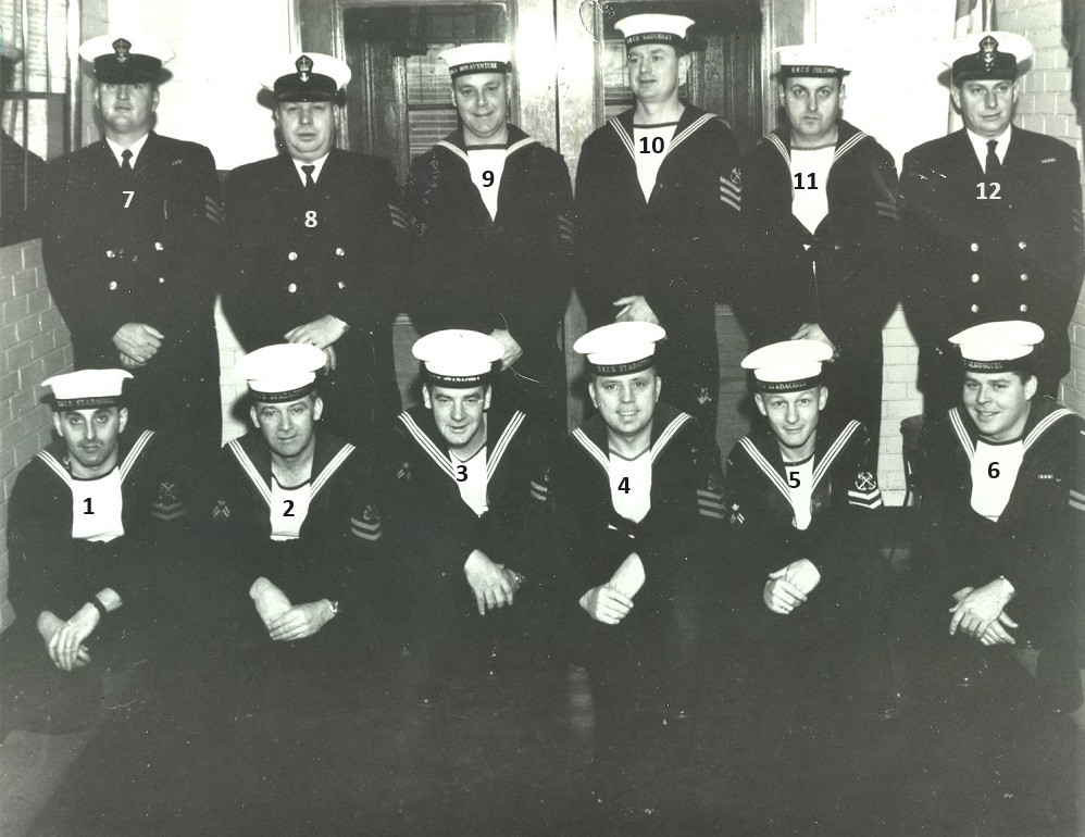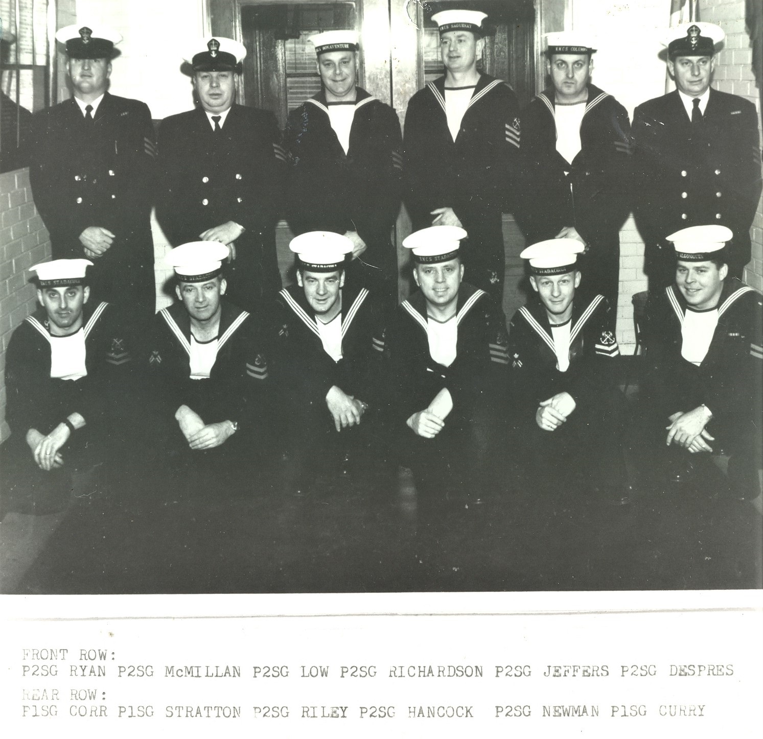 (1) P2SG Ryan (2) P2SG McMillan (3) P2SG Lo (4) P2SG Richardson (5) P2SG Jeffers (6) P2SG Despres (7) P1SG Corr (8) P1SG Stratton (9) P2SG Riley (10) PsSG Hancock (11) P2SG Newman (12) P1SG Curry Courtesy of the Naval Museum of Halifax