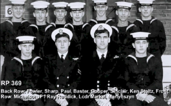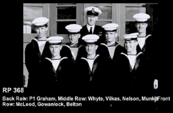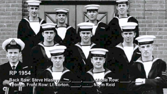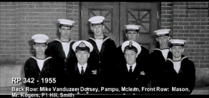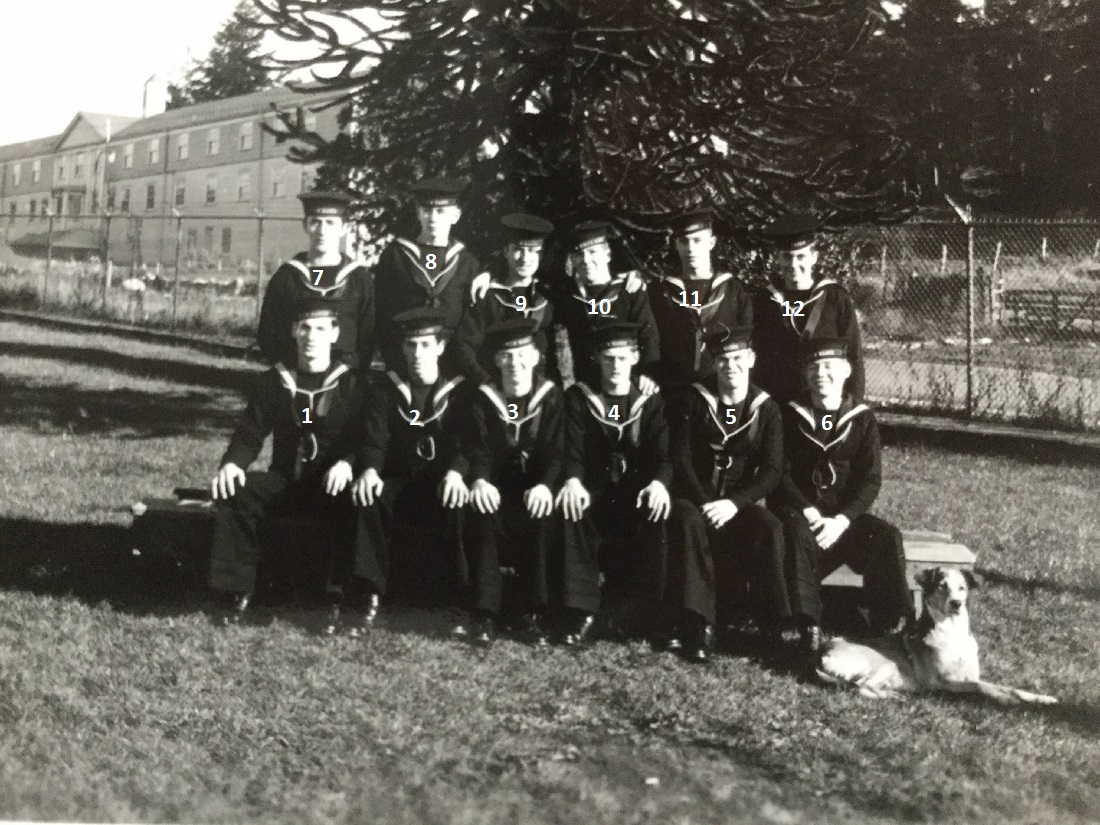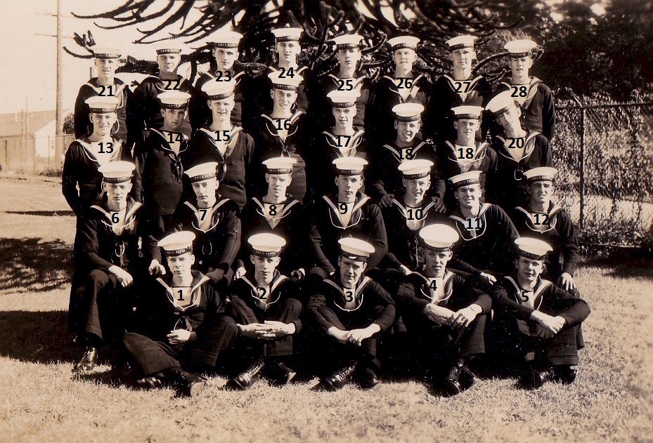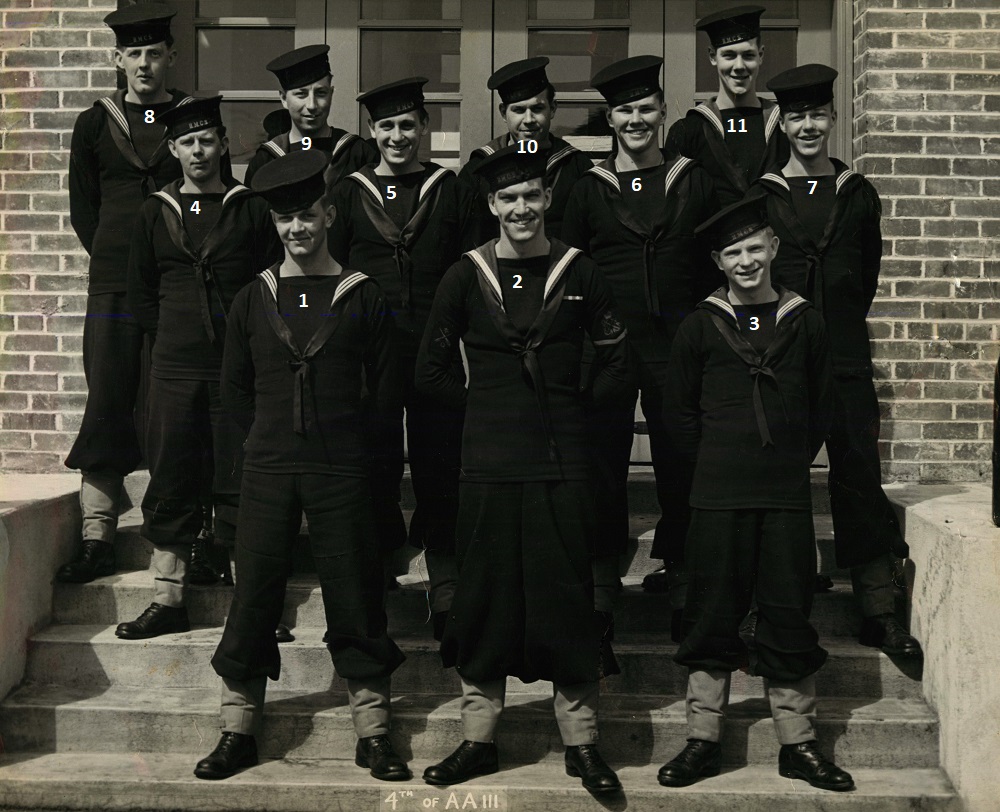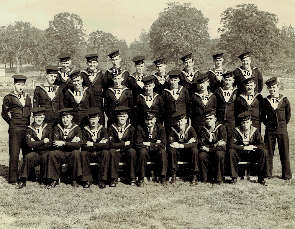 (1) Osypichuk, M. (2) McKenna, J. (3) Gallo, Mike, LS, Instructor (4) Harvey, L.D. (5) Smith, D. (6) Johnson, H.M. (7) Jones, E. (8) Cummings, William (9) Cook, J.D. (10) McReady, T.M. (11) Pound, W.G. (12) Mather, W.G. (13) Barber, G.M. (14) Wallace, J.F. (15) Johnston, B.A. (16) Pierce, J. (17) Strachan, R. (18) Krpan, Ivan John