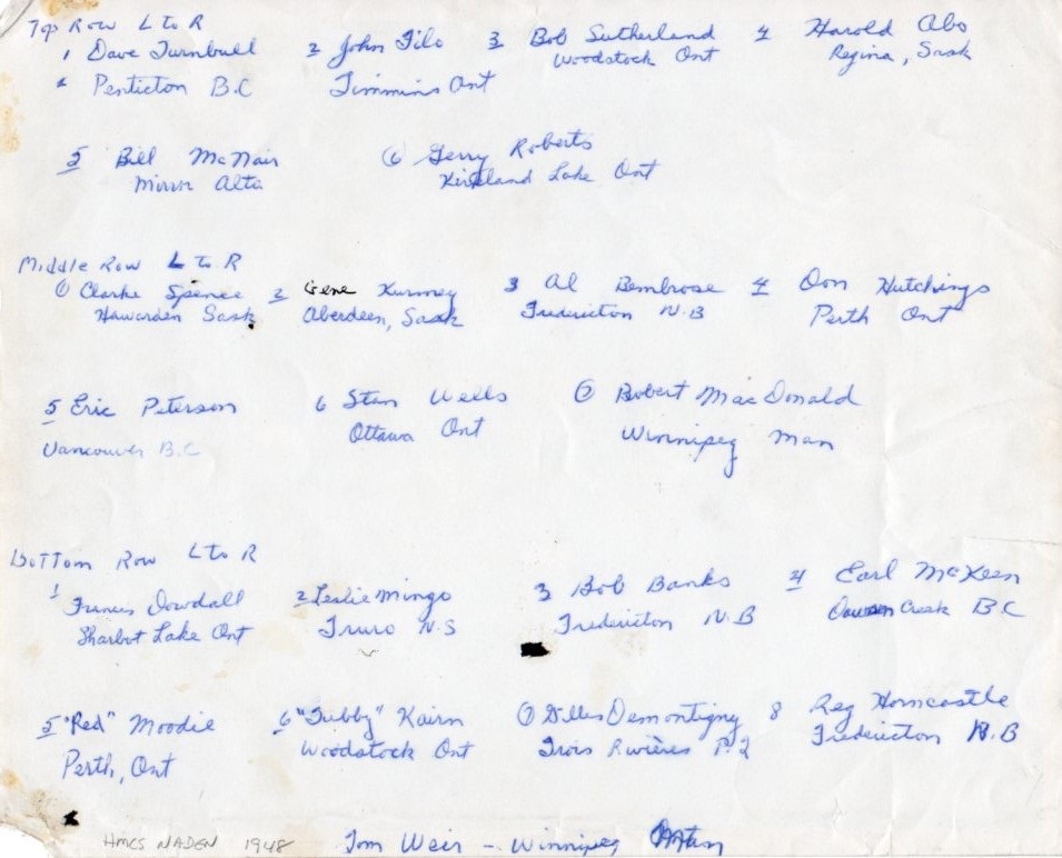 New Entry 12 Class, HMCS NADEN, 1948 Courtesy of Francis Dowdall Click on the above photo to view it without numbers
