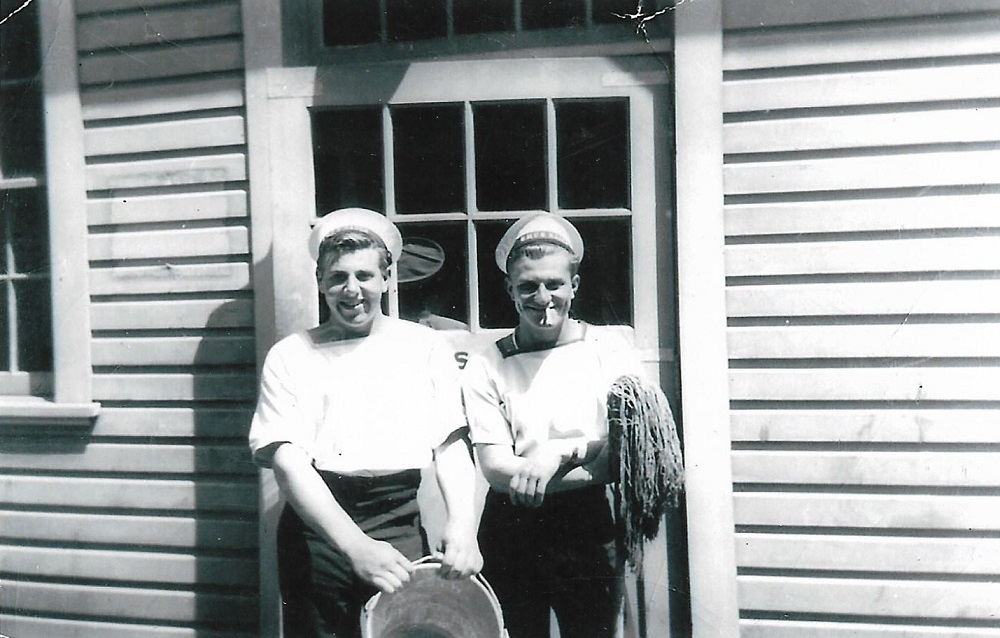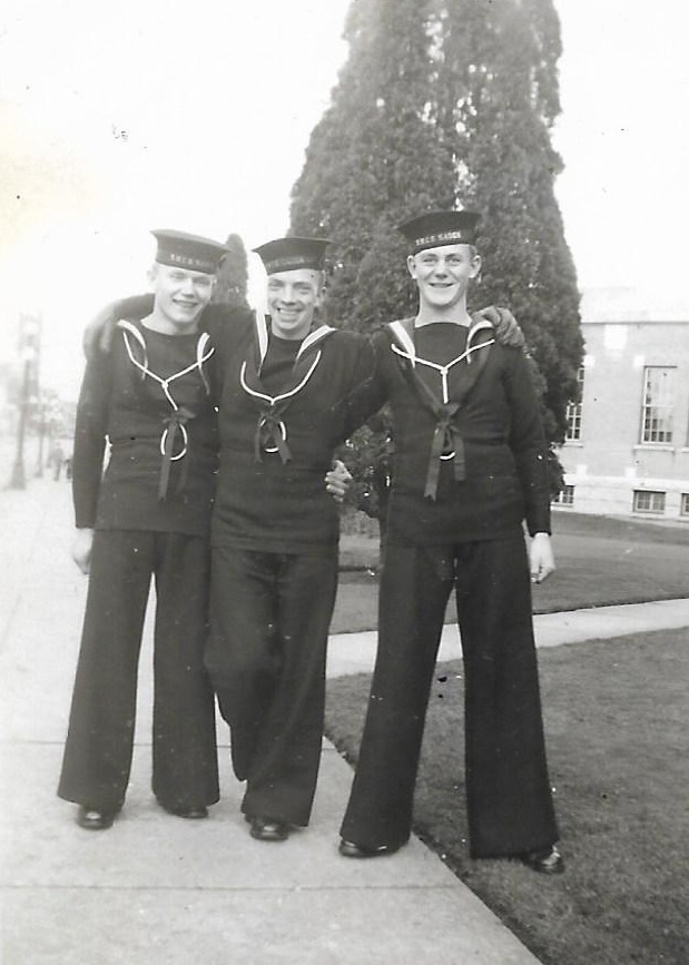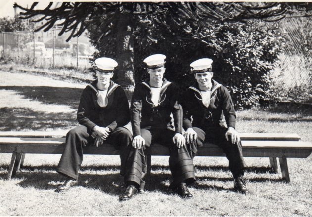 L-R: G. Sutherland, William Carter Dziadyk and Sampson during new entry training at HMCS NADEN - Mar 1949 Click on the above photo to view a larger image