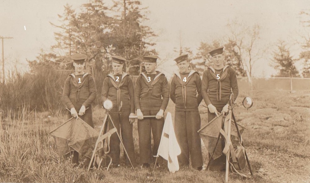 (1) D. Macfarlane (2) Bill Waters (3) Charles W. "Tug" Wilson, L/Sig Instructor (4) Thomas Carson (5) Cedric Smith