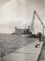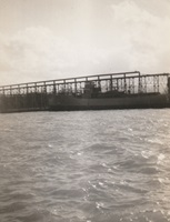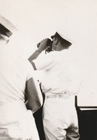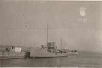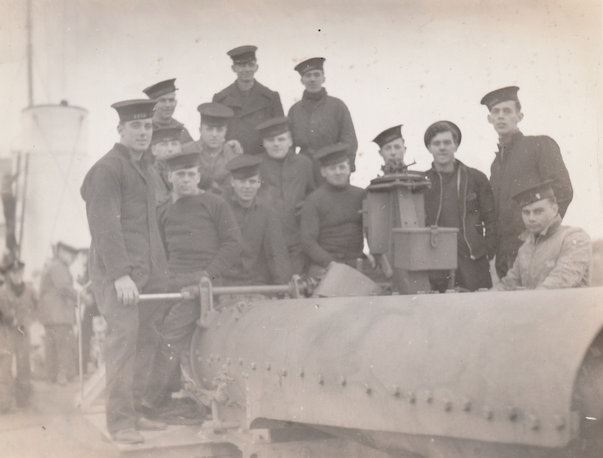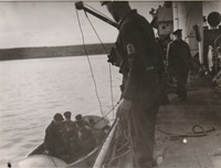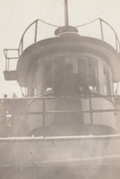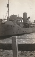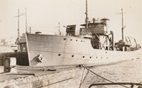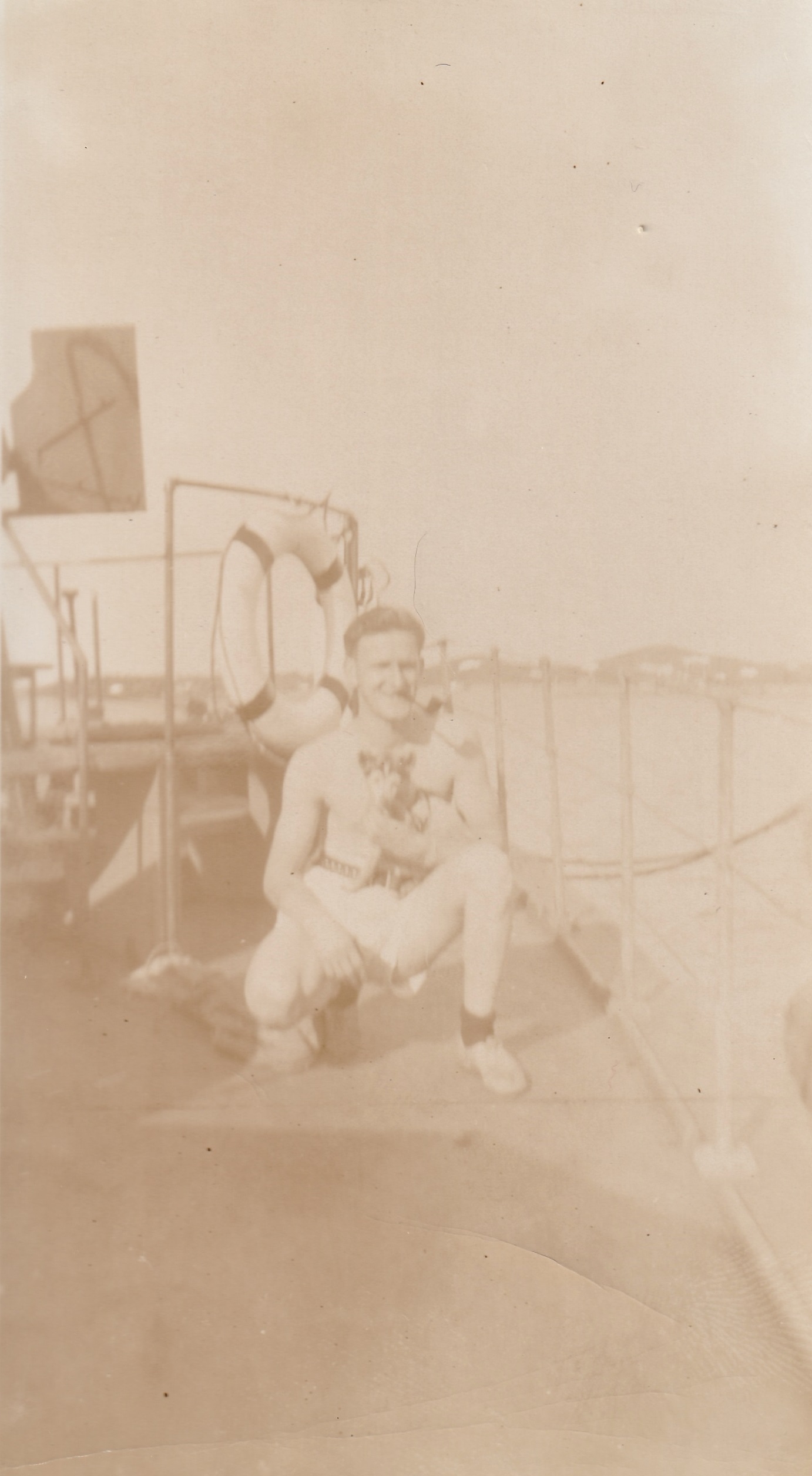 (WL040) Sailors on unknown Fairmile having a smoke break. The sailor on right is holding a paint brush (WL041) Sailor with ship's mascot on an unknown Fairmile