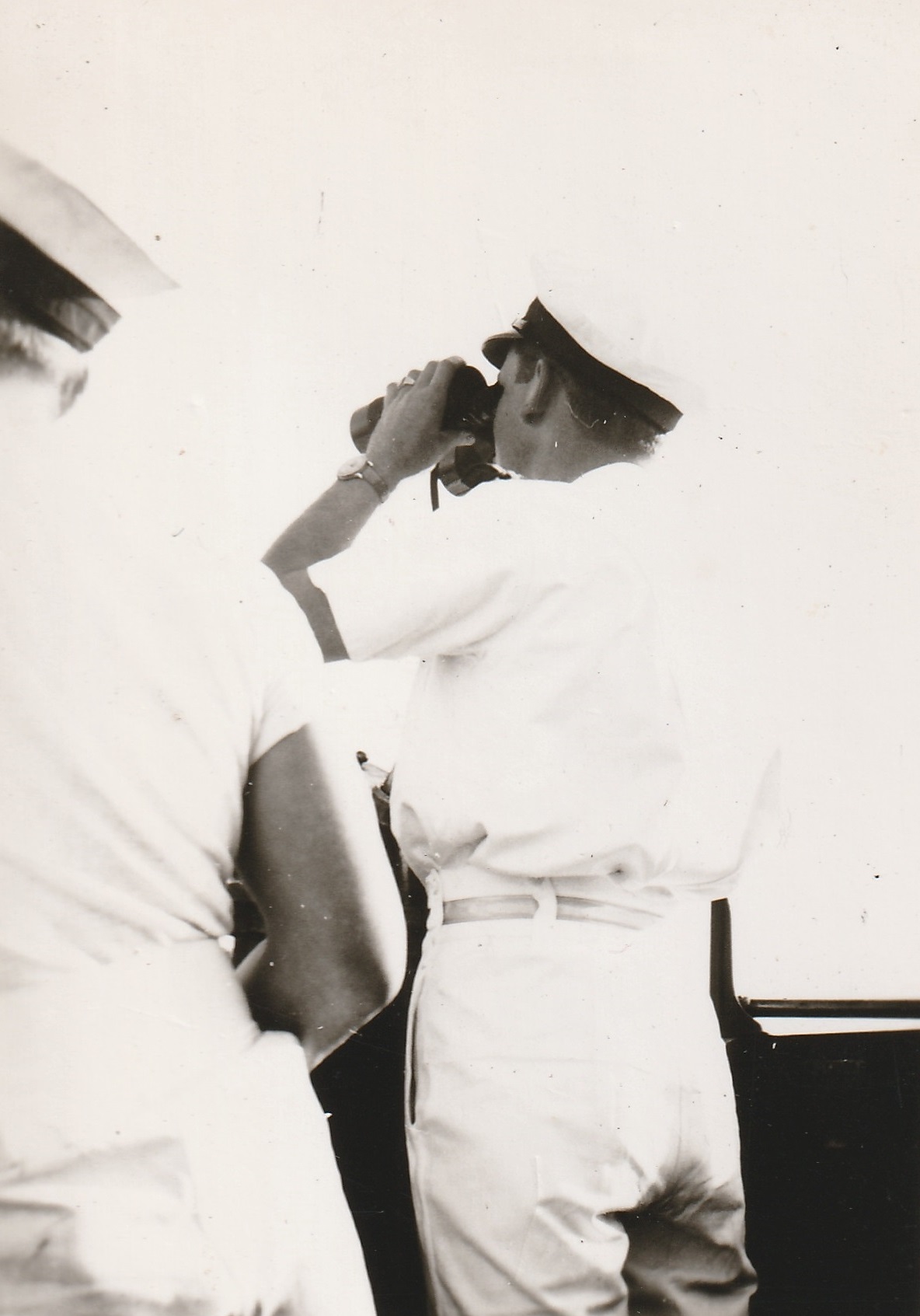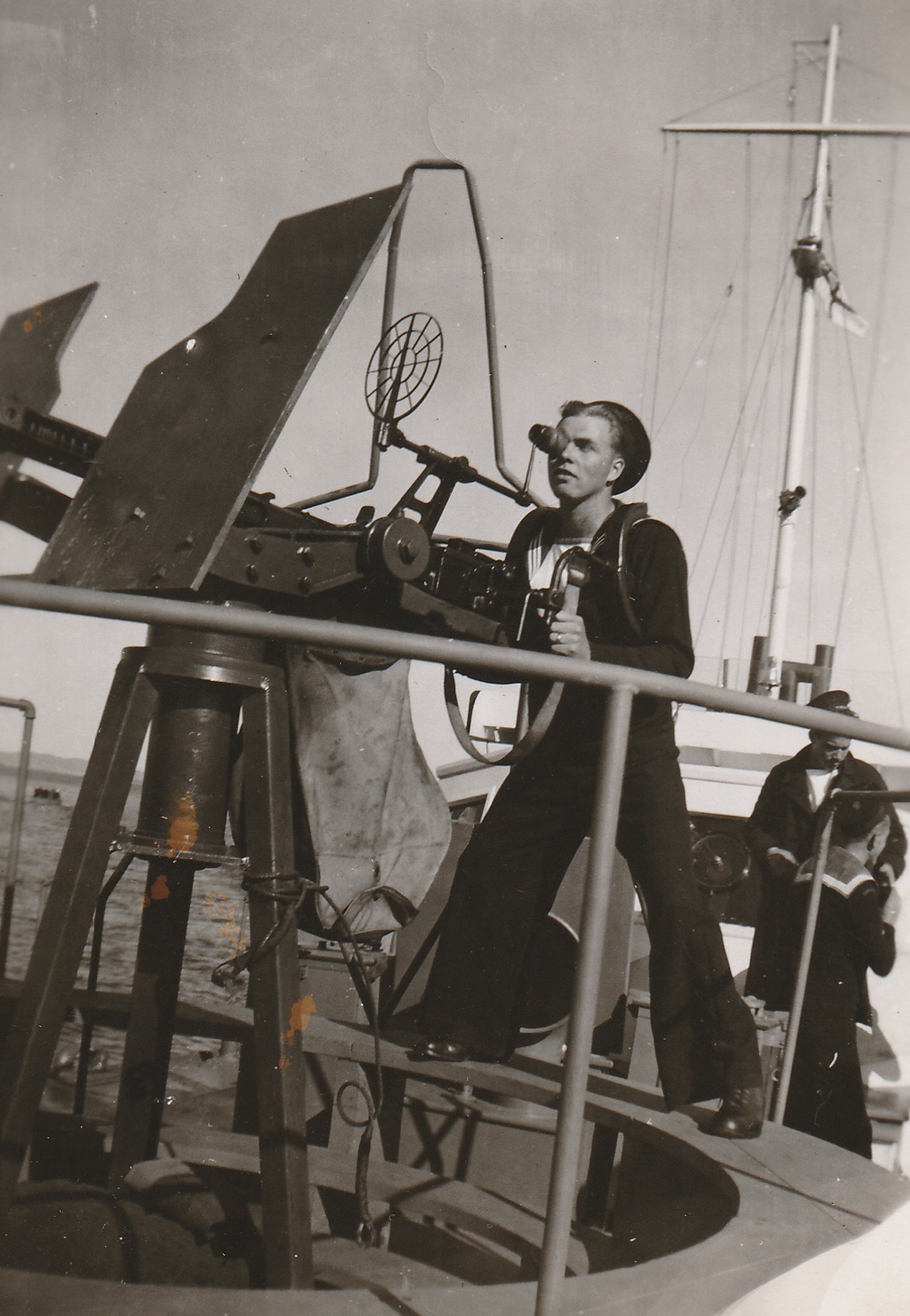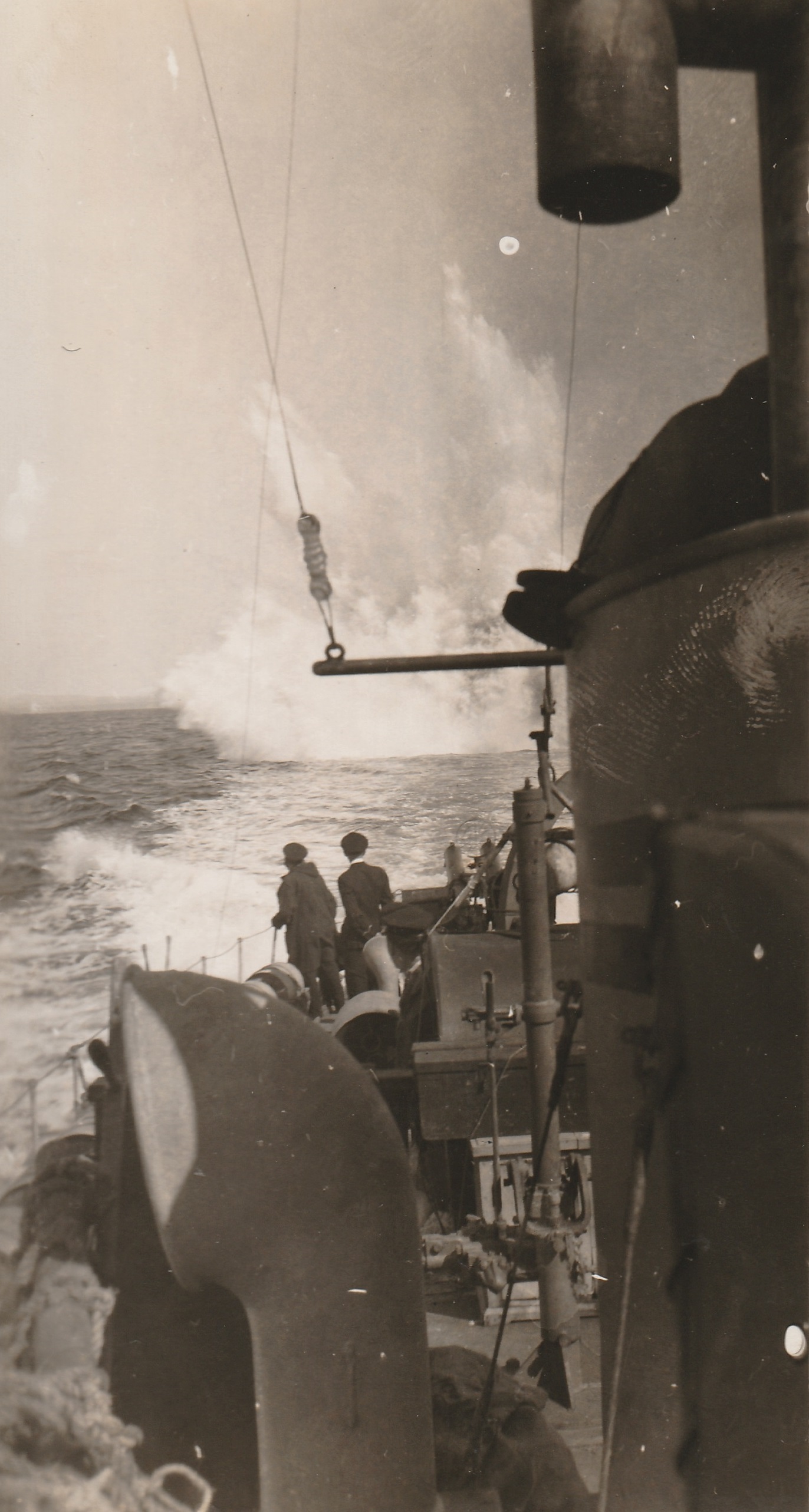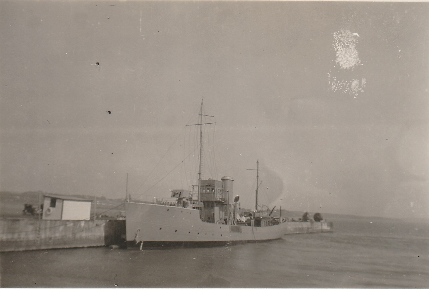 (WL036) ML Q100 seen from unknown Fairmile (W037) ML Q101 (left side of photo), ML Q100 (ahead of Fairmile in foreground), possibly ML Q084 lead ship (WL038) Sailor on the quarterdeck of an unknown Fairmile - with another Fairmile following astern (WL039) Sailing vessel seen from unknown Fairmile