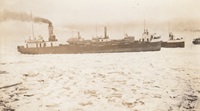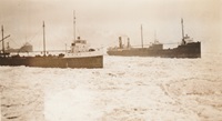 (WL020-WL021) Great Lakes freights in convoy transiting an ice-filled St. Lawrence Seaway (WL022) Unknown tug boat