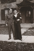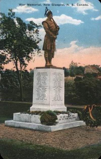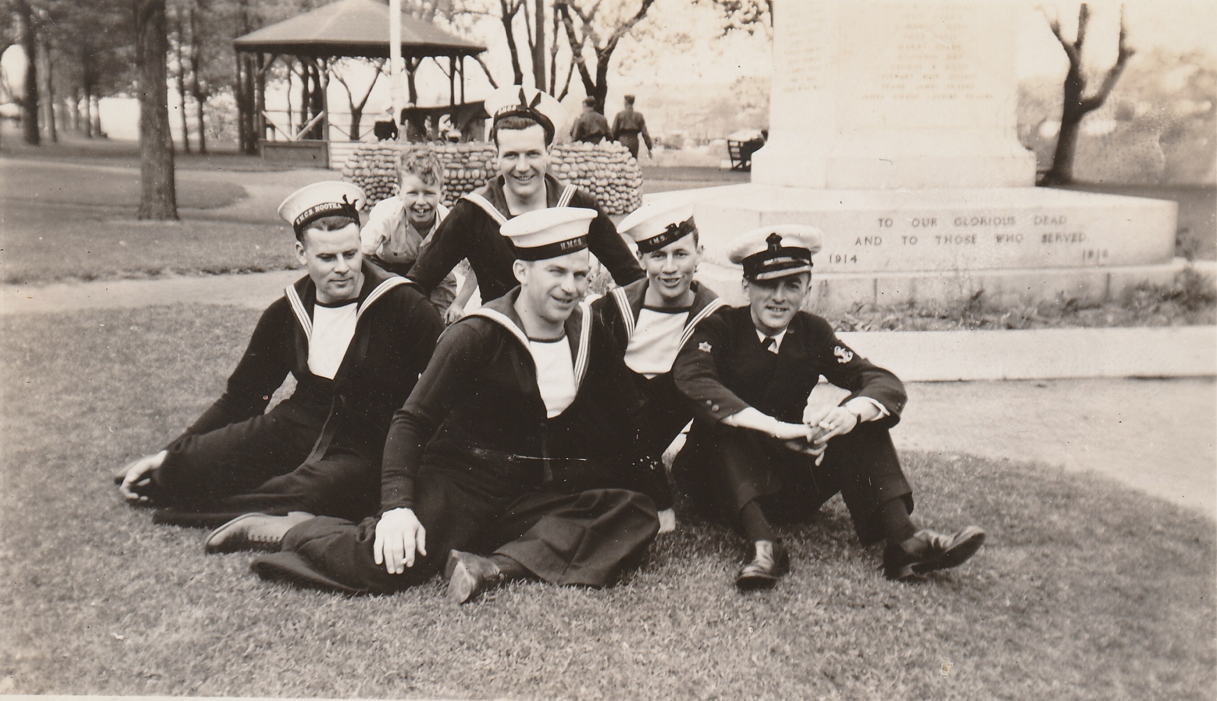 (WL016-WL017) Sailors in from of the New Glasgow Cenotaph in Carmichael Park, New Glasgow, Nova Scotia (WL018-WL019) These 2 images are not part of the Lilbourne collection - but show the New Glasgow Cenotaph as it was during the Second World War and then years later after it was refurbished