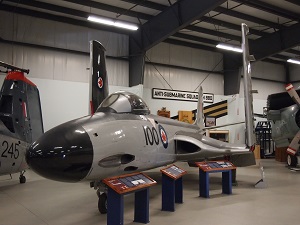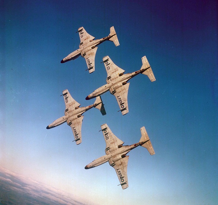 Banshees were the primary aircraft of the short-lived Royal Canadian Navy Grey Ghosts aerobatic team. The team’s name was a play on the Banshee name and the RCN color scheme. The RCN’s Banshee fleet was too small to maintain a special contingent of aircraft for airshow service, so the team simply flew whichever active-duty Banshees were available at the time of each show.