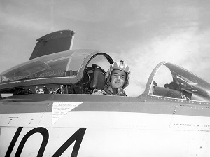 I thought my flight's job wasn't particularly demanding (quite wrongly, as it turned out) ; but we practiced two-plane and four-plane formation flying relentlessly that summer without, however, any formation aerobatics. This was the purview of the Squadron Commander's flight which practiced harder than we did. They'd taxi out in formation, blast off, depart for the low flying area, and come back two hours later with their flight suits and G-suits wringing wet, sweating like pigs. They'd usually be in bad humour, the afternoon sun causing bumpy conditions, or Wally Walton not being smooth enough, or Ed Hallett chewing out Alec Fox and Wally Sloan for not being symmetrically spaced. Their competition would be the RCAF Golden Hawks, the USN Blue Angels, and the USAF Thunderbirds; they had to be perfect.