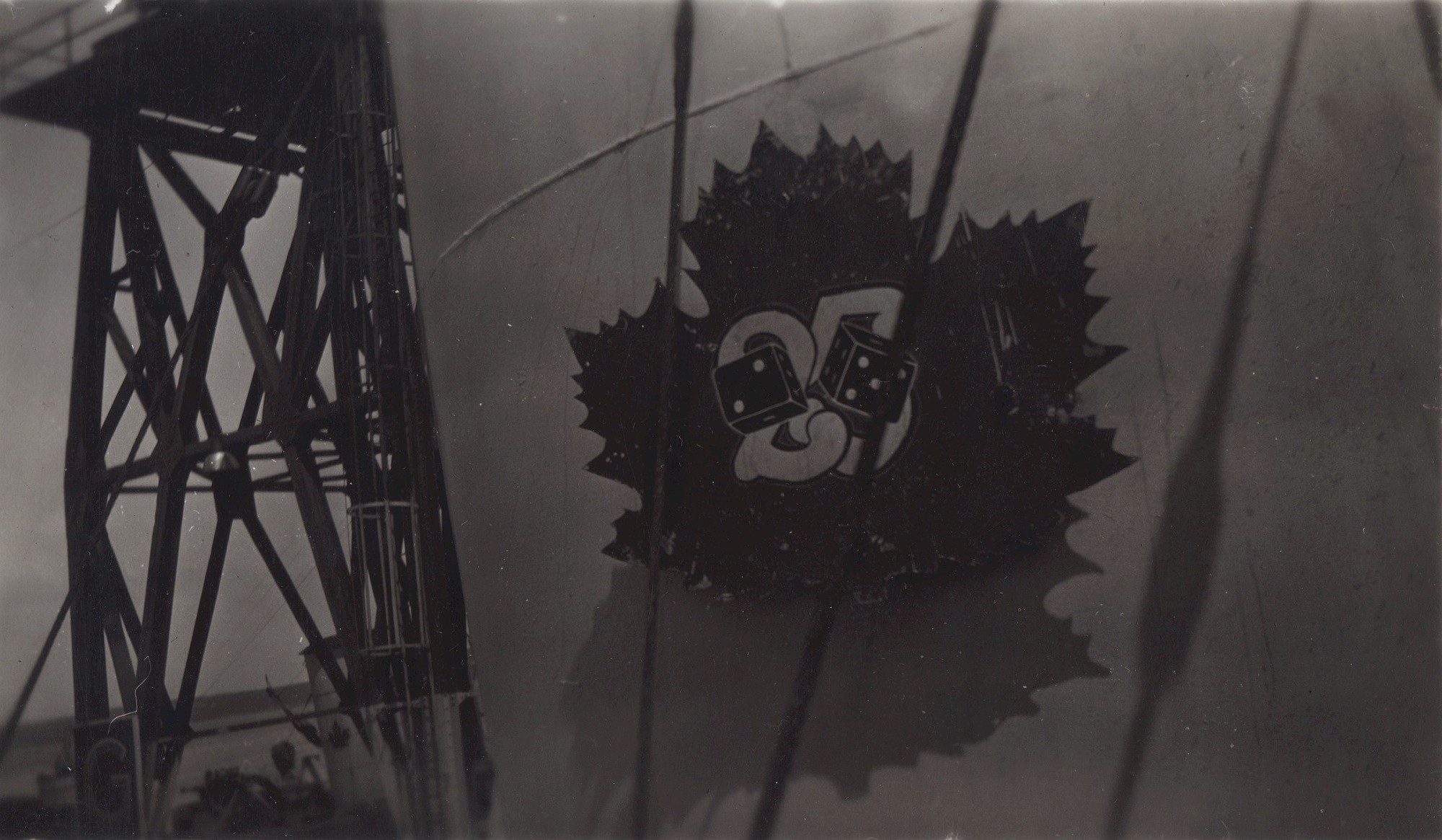 PO Bell claims he painted the maple leaf on the funnel of his ship but it was not authorized and was painted over the next day. AB Stephenson got permission to from his commanding officer to add a green maple leaf to his ship's funnel.