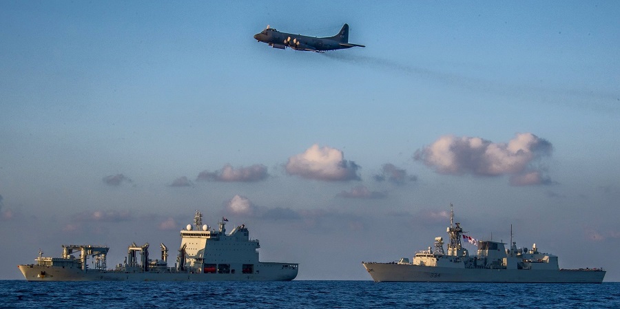 Working with the Canadian led Combined Task Force 150, HMCS REGINA and NRU ASTERIX are operating alongside a CP-140M Aurora from 19 Wing Comox on OpArtemis, the CAF contribution to counter-terrorism and maritime security operations in the Arabian Sea.
