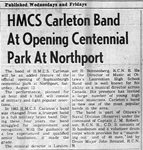(CRL001) Article on Navy Week at HMCS CARLETON 03-09 May 1964 // Mentioned in the article: PO.BD Peter Akeson; BD Bernard Guibert and Drum Major Brett Morrison // Courtesy of Mark Akeson (CRL002) HMCS Carleton Band At Opening Centennial Park At Northport // Picton Gazette 21 Jul 1967 // Researched by / Courtesy of John Lyons 2016 (CRL003) HMCS Carleton, 79 Prince of Wales Drive, Ottawa, ON // Photographer: MS Victor Wong