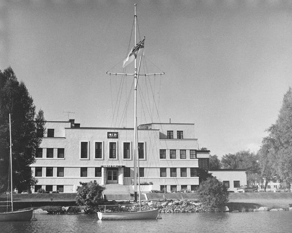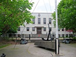 Photo above- centre: The large building, No. 1, contained ship's offices, cabins for the CO, XO and other senior officers, wardroom (large vertical windows on second deck), seamen's mess (below decks) and wrens' mess on the third deck. The large drill deck was immediately to the rear and one can see the recruiting office at the extreme right of the photo.
