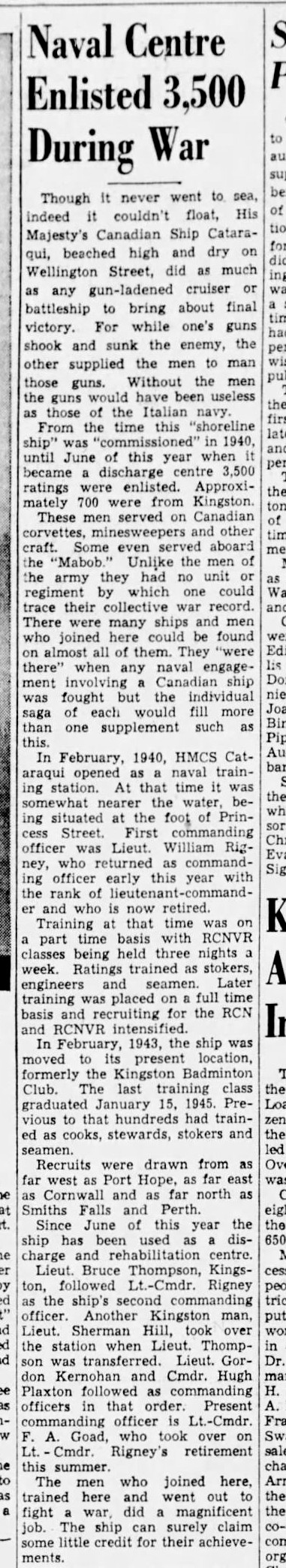 HMCS CATARAQUI'S wartime history - Article from the Kingston Whig-Standard 13 Oct 1945 // Courtesy of James Sturgess